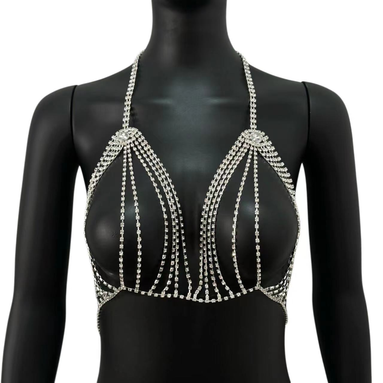 | nameOriginal | European and American fashion hot selling personality exaggerated vertical row sexy rhinestone bikini bra body chain |