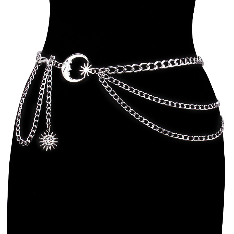 | nameOriginal | European and American fashion jewelry moon multi-layer metal chain waist chain belt hip hop punk Sun Crescent body chain |