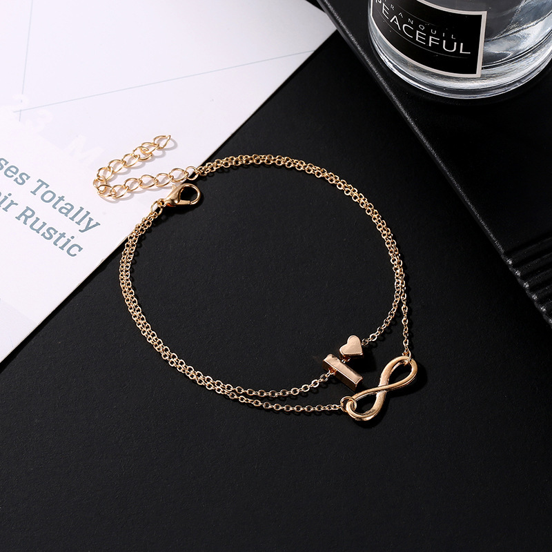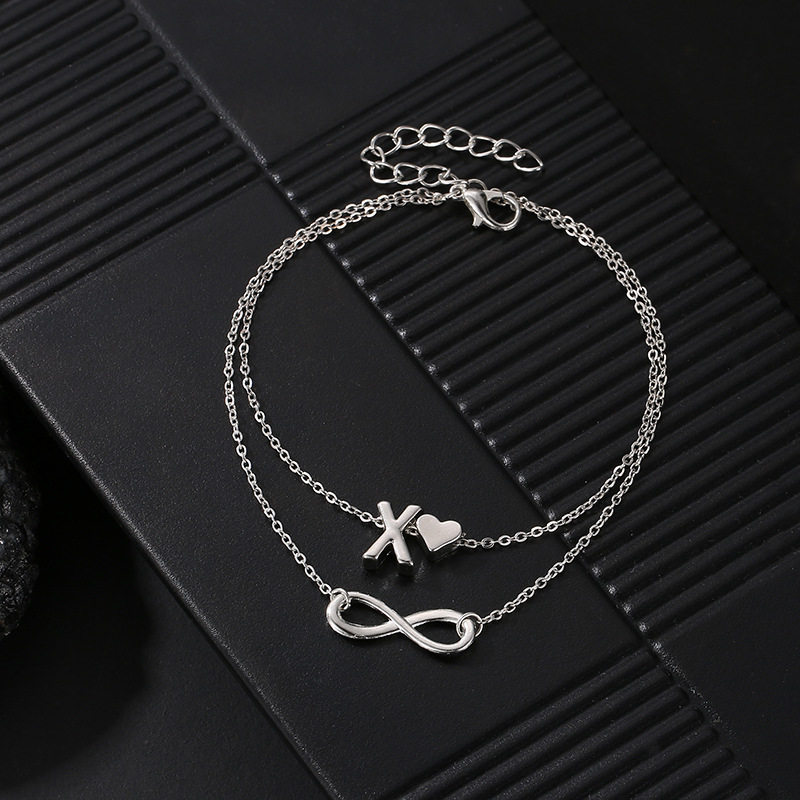 European and American fashion love double foot ring 26 English letters personality 8 word Joker multi-layer anklet cross-border supply