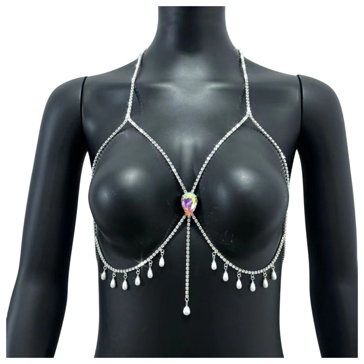 | nameOriginal | European and American Fashion New Elegant Full Diamond Pearl Water Drop Pendant Chest Chain Sexy Fashion All-match Bikini Body Chain |