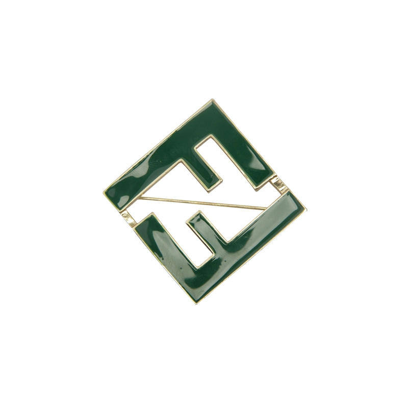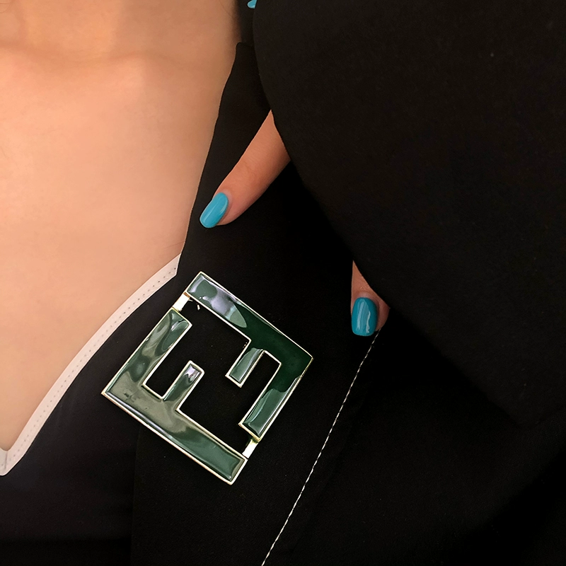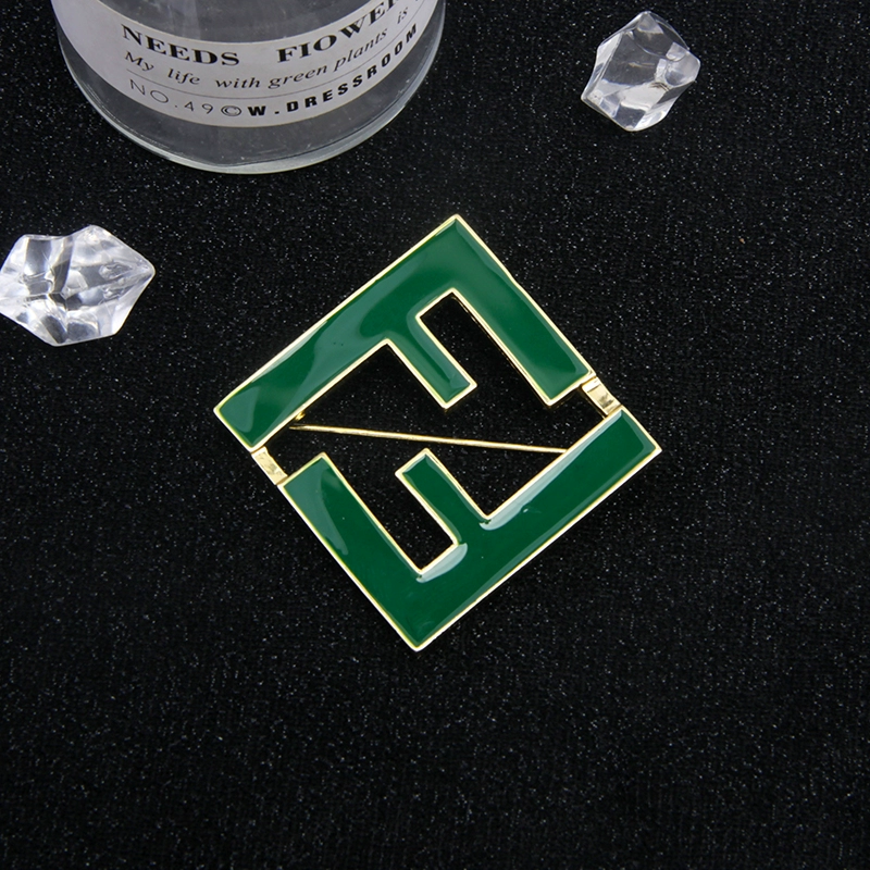 | nameOriginal | European and American fashion retro double F letter brooch, high-end simple green gold edge square pin suit accessories |