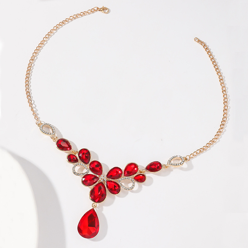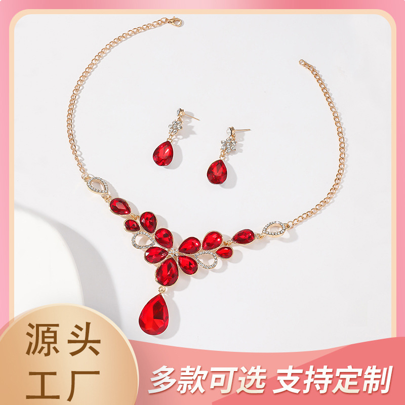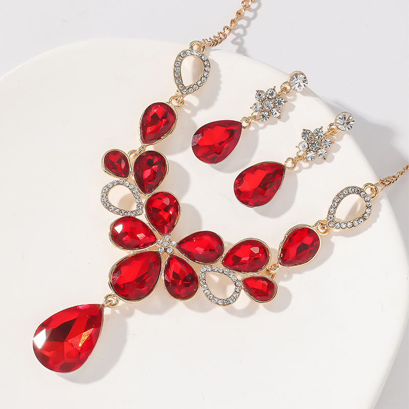 | nameOriginal | European and American fashion rhinestone jewelry pomegranate color gem necklace earrings suit temperament pendant jewelry manufacturers wholesale |