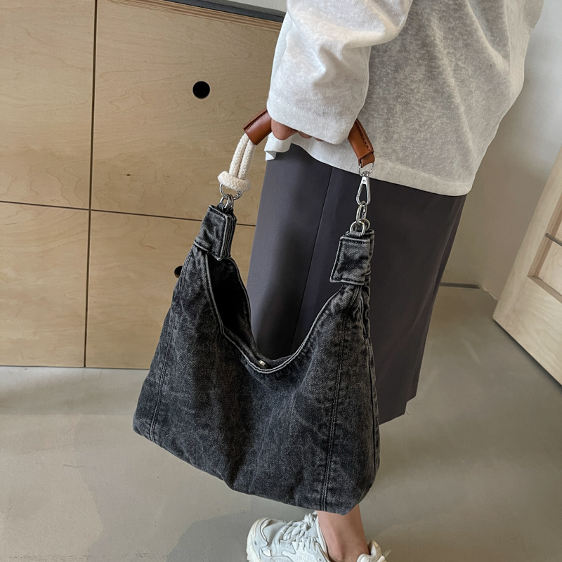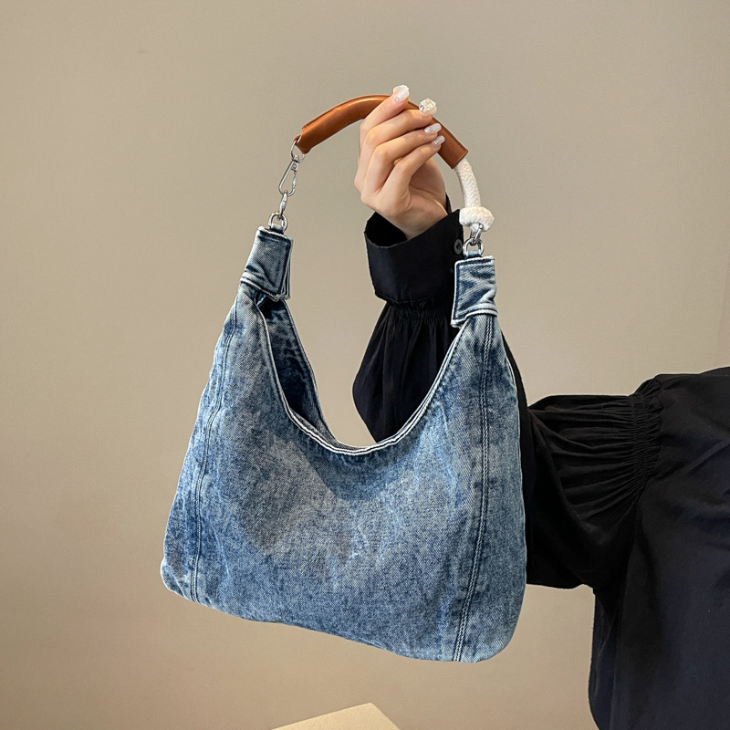 European and American Fashion Underarm Bag Women’s 2024 Cross-border New Washed Denim Retro Large Capacity Shoulder Bag