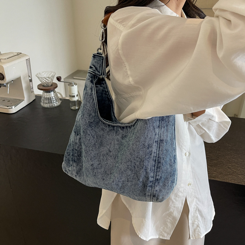 European and American Fashion Underarm Bag Women's 2024 Cross-border New Washed Denim Retro Large Capacity Shoulder Bag