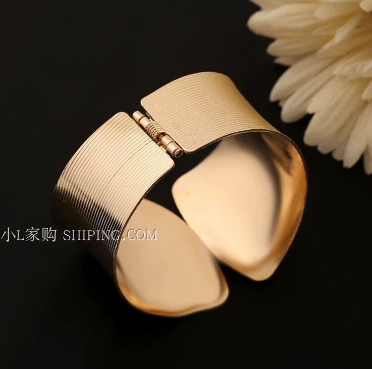 European and American fashionable and personalized nightclub Korean version exaggerated wide spring gauze pattern gold bracelet bracelet bracelet jewelry