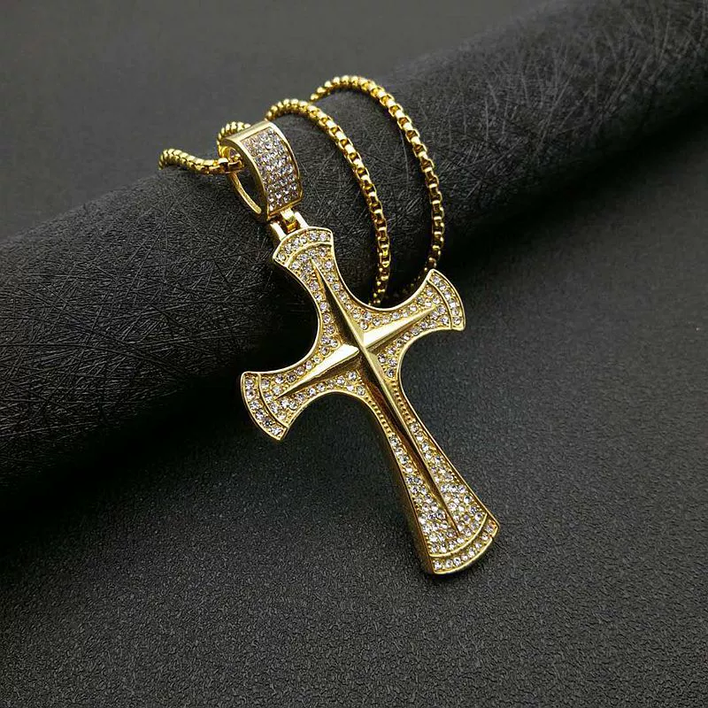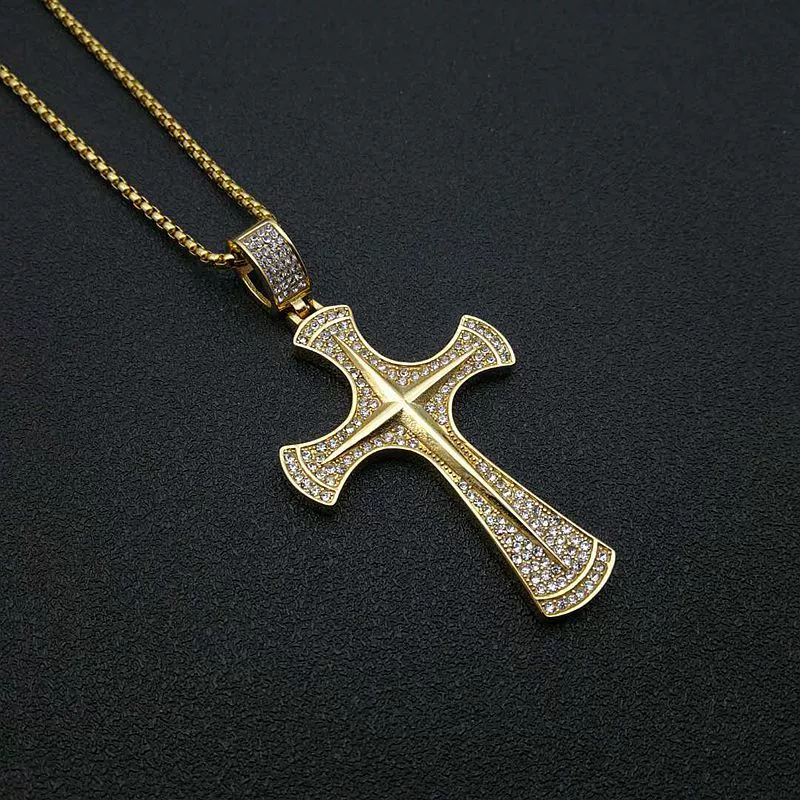 | nameOriginal | European and American fashionable titanium steel gold-plated diamond cross pendant necklace personalized versatile hip-hop punk pendant street style |