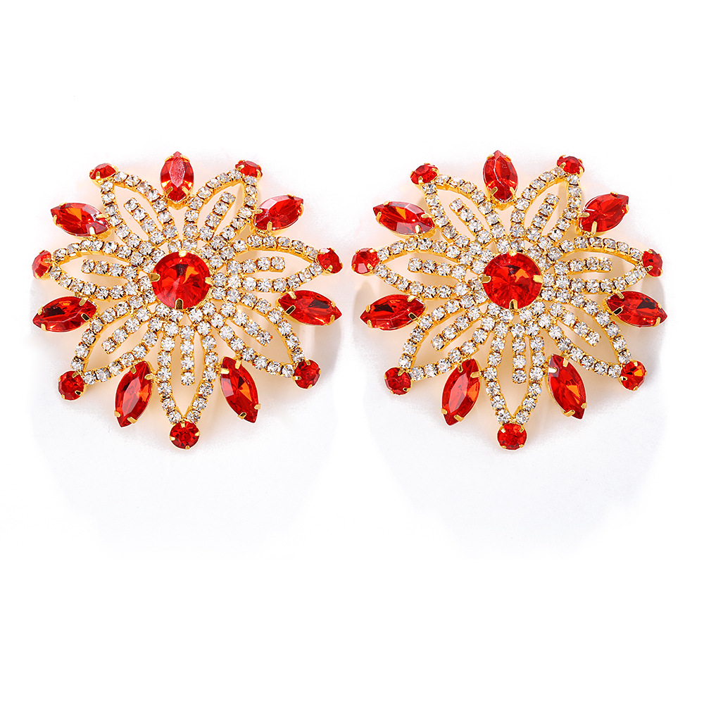 European and American Flower-shaped Hollow Rhinestone chest stickers Sexy Luxury Ruby Nipple stickers for Women