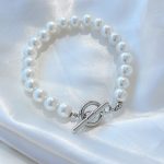 European and American foreign trade accessories, niche light luxury French glass pearl bracelet, gentle pearl temperament OT buckle bracelet