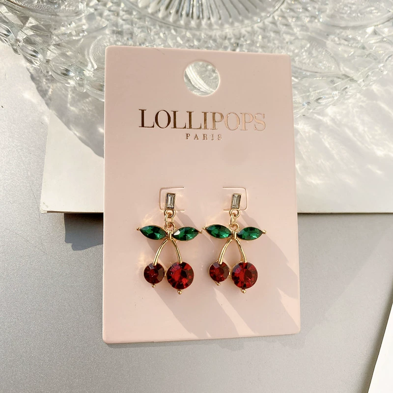 European and American foreign trade accessories, trendy brand Lo*llrpos, high-end niche cherry flash diamond design, versatile earrings for commuting