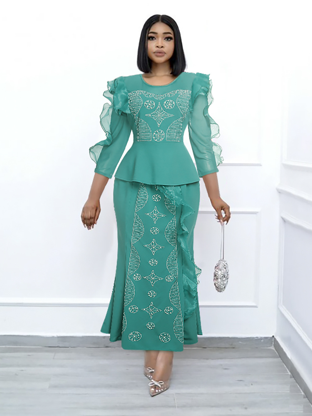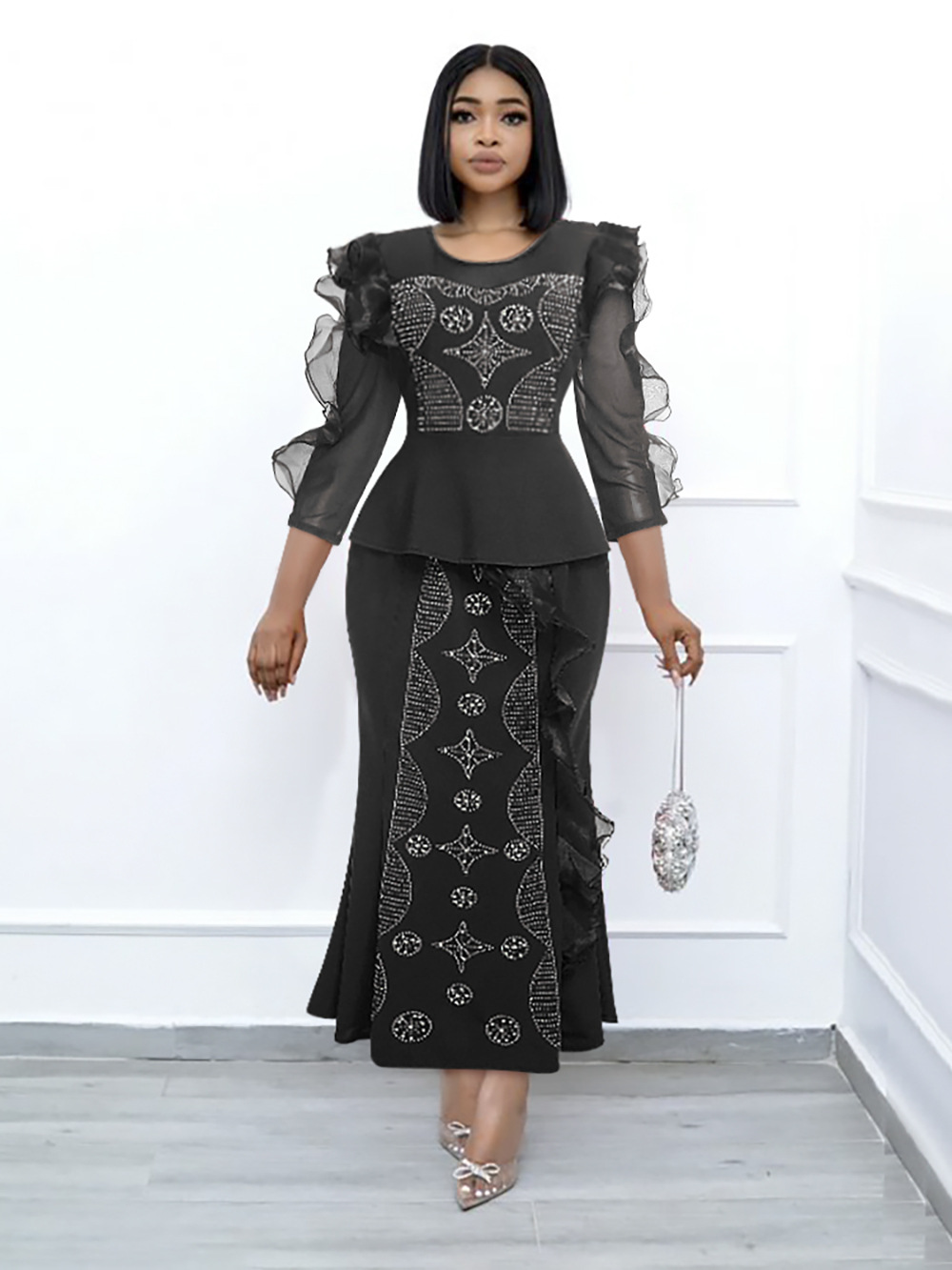 | nameOriginal | European and American Foreign trade African women's clothing AliExpress private clothing ladies slim fit dress two-piece top skirt |