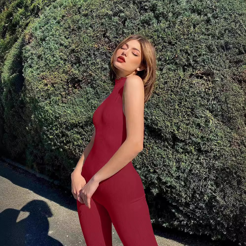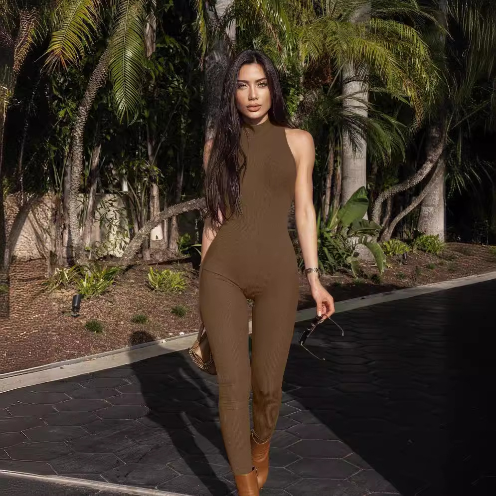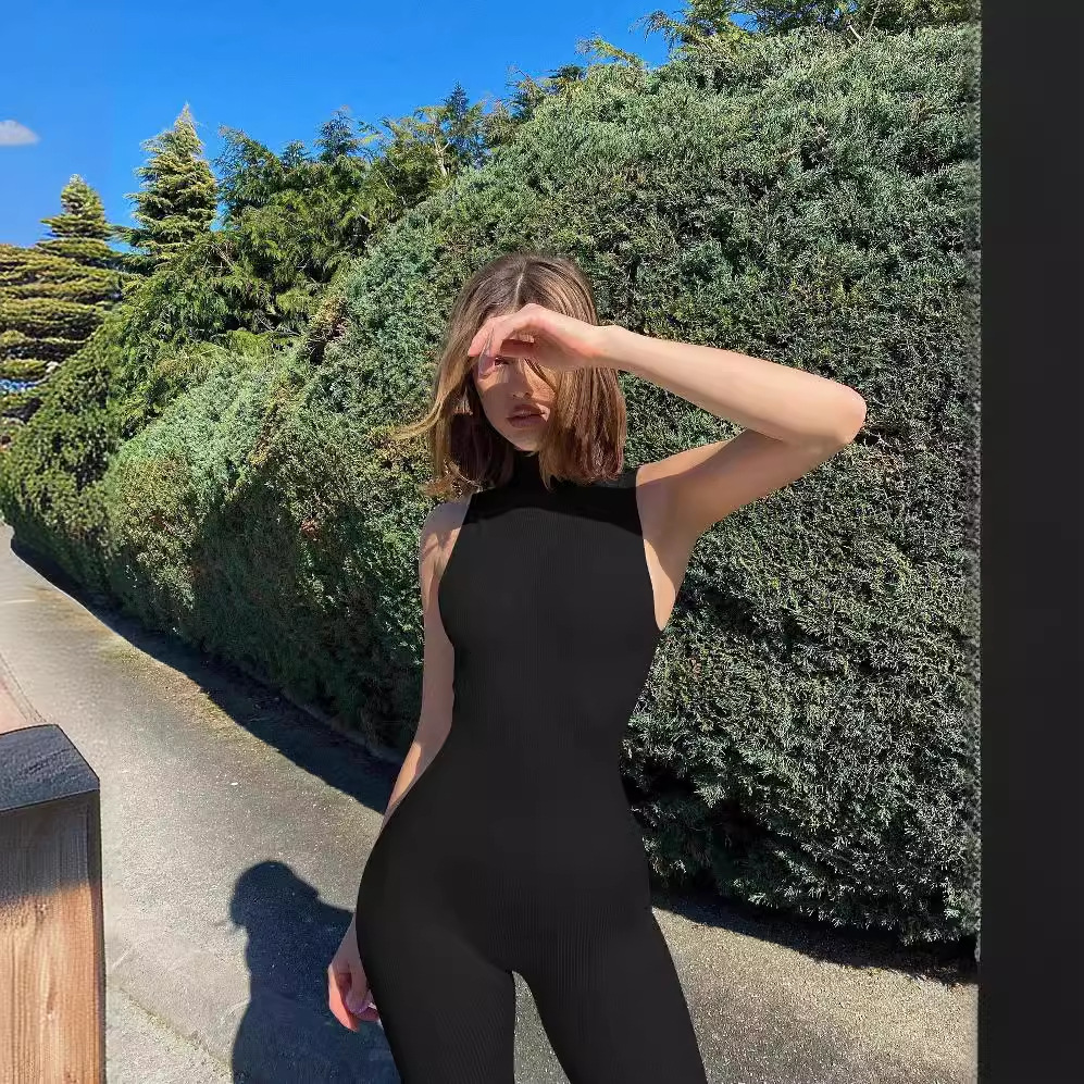 | nameOriginal | European and American Foreign Trade Amazon Women's Yoga Jumpsuit Slim-Fit Rib Sleeveless High Collar Top Sports Jumpsuit |