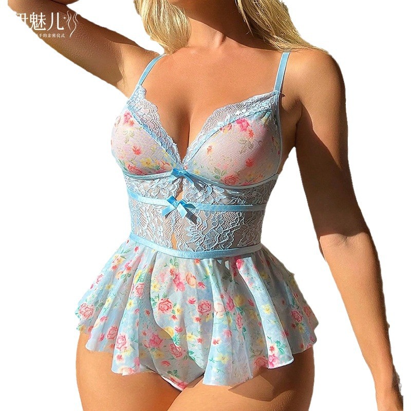| nameOriginal | European and American Foreign Trade Body Shaping Bow Stitching Lace Mesh Printing Backless Perspective Sexy Lingerie One-Piece |