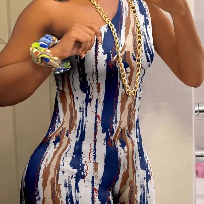 nameOriginal | European and American Foreign Trade Cross-border Amazon AliExpress Printed Jumpsuit Women's Single Inclined Shoulder New Style |