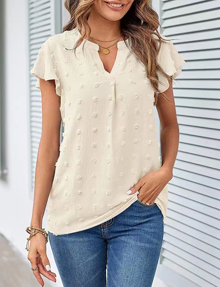 | nameOriginal | European and American Foreign Trade Cross-border Women's 2023 Amazon Summer New V-neck Lotus Leaf Sleeve Chiffon Shirt Short Sleeve T-shirt |