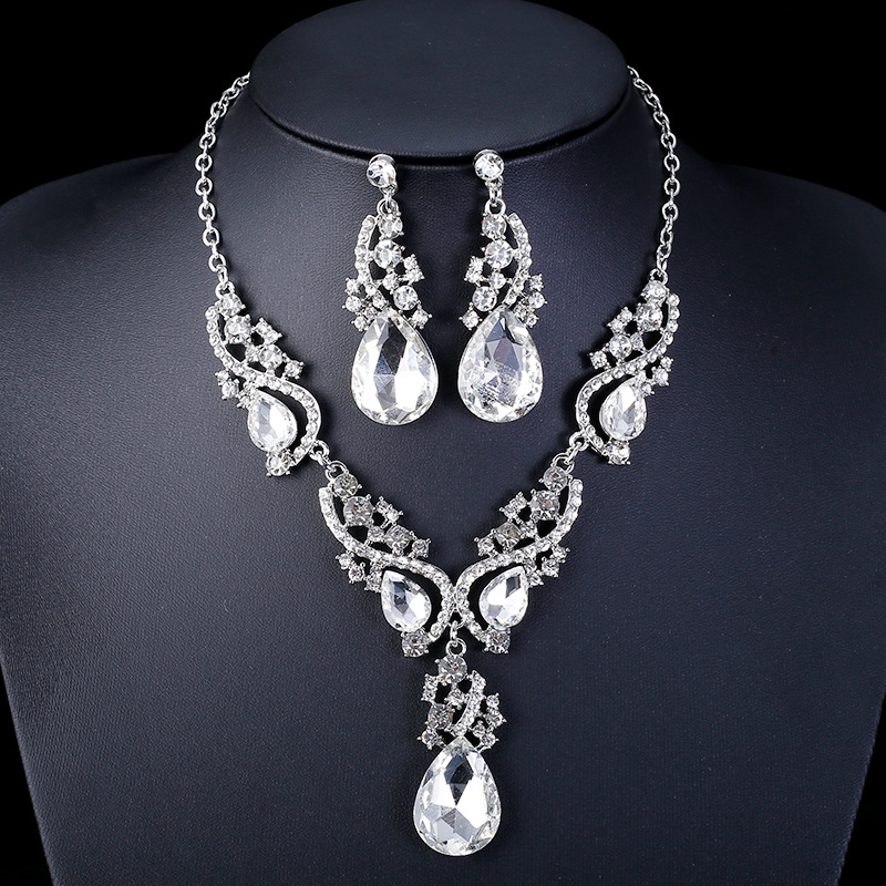 | nameOriginal | European and American Foreign Trade Crystal Gem Necklace Earrings Set Retro Diamond Pendant String Bridal Wedding Banquet Jewelry |