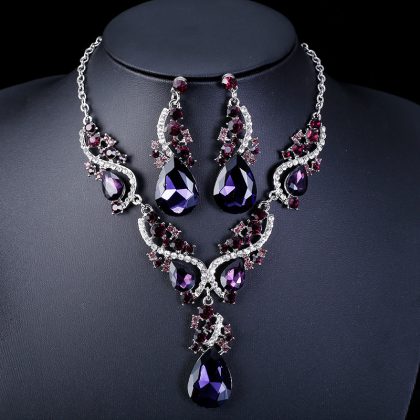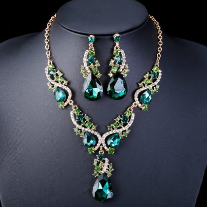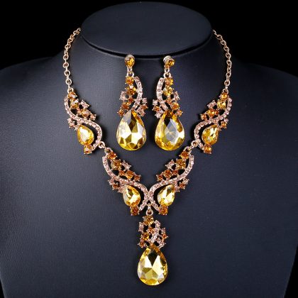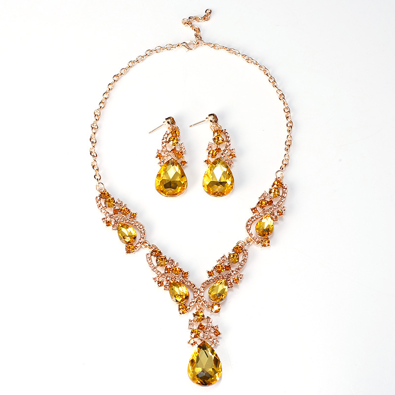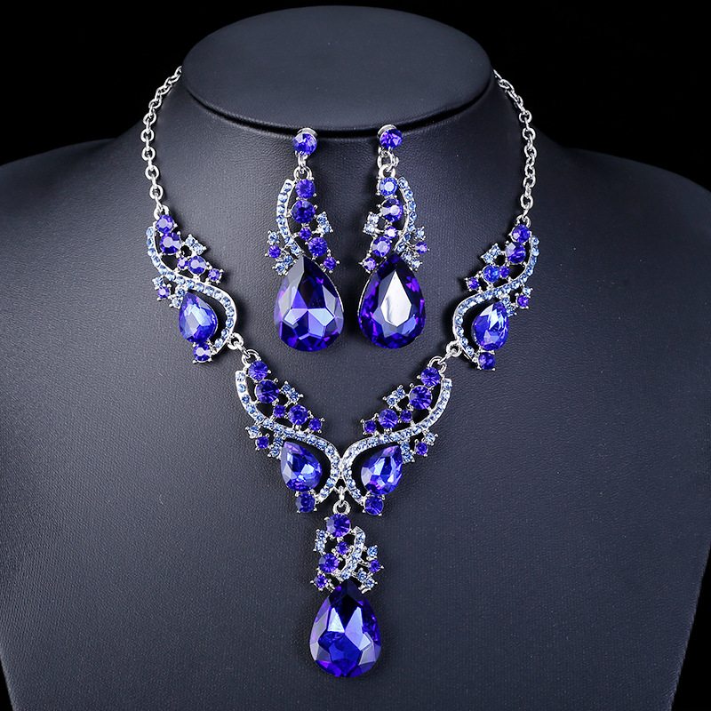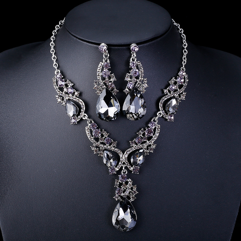 | nameOriginal | European and American Foreign Trade Crystal Gem Necklace Earrings Set Retro Diamond Pendant String Bridal Wedding Banquet Jewelry |