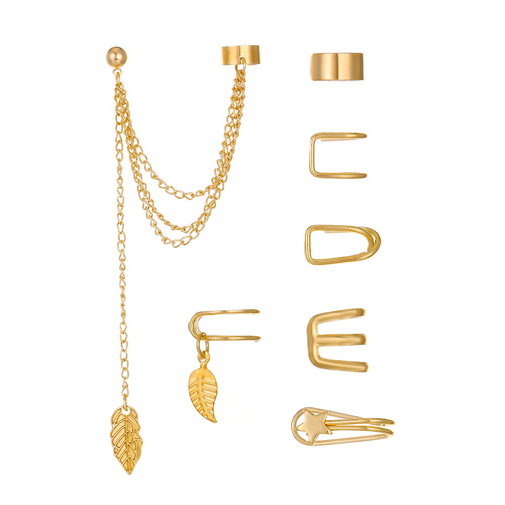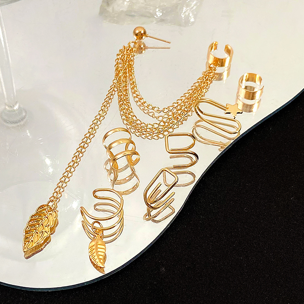| nameOriginal | European and American foreign trade ear clip set 7-piece set creative simple alloy leaf tassel earrings earrings wholesale |