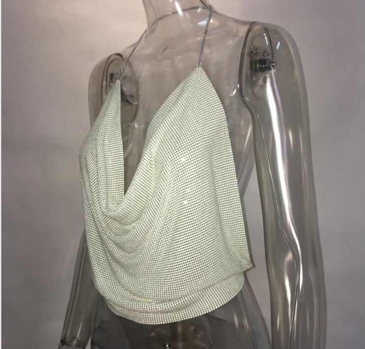 European and American Foreign Trade Nightclub Low-cut Backless Metal Sequin Ties Sling Deep V Navel Vest