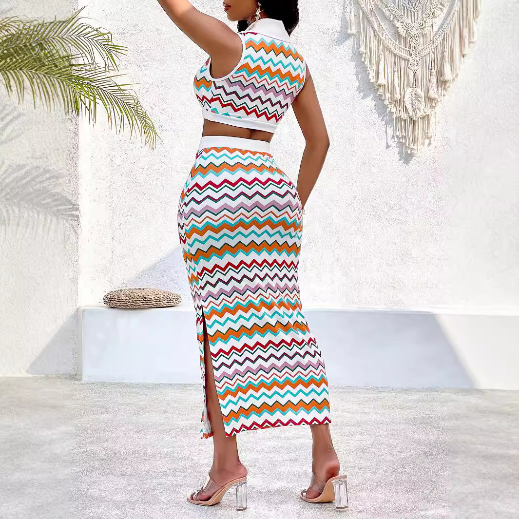 | nameOriginal | European and American foreign trade sexy women's clothing 2024 summer Amazon explosions striped lapel sleeveless top suit |