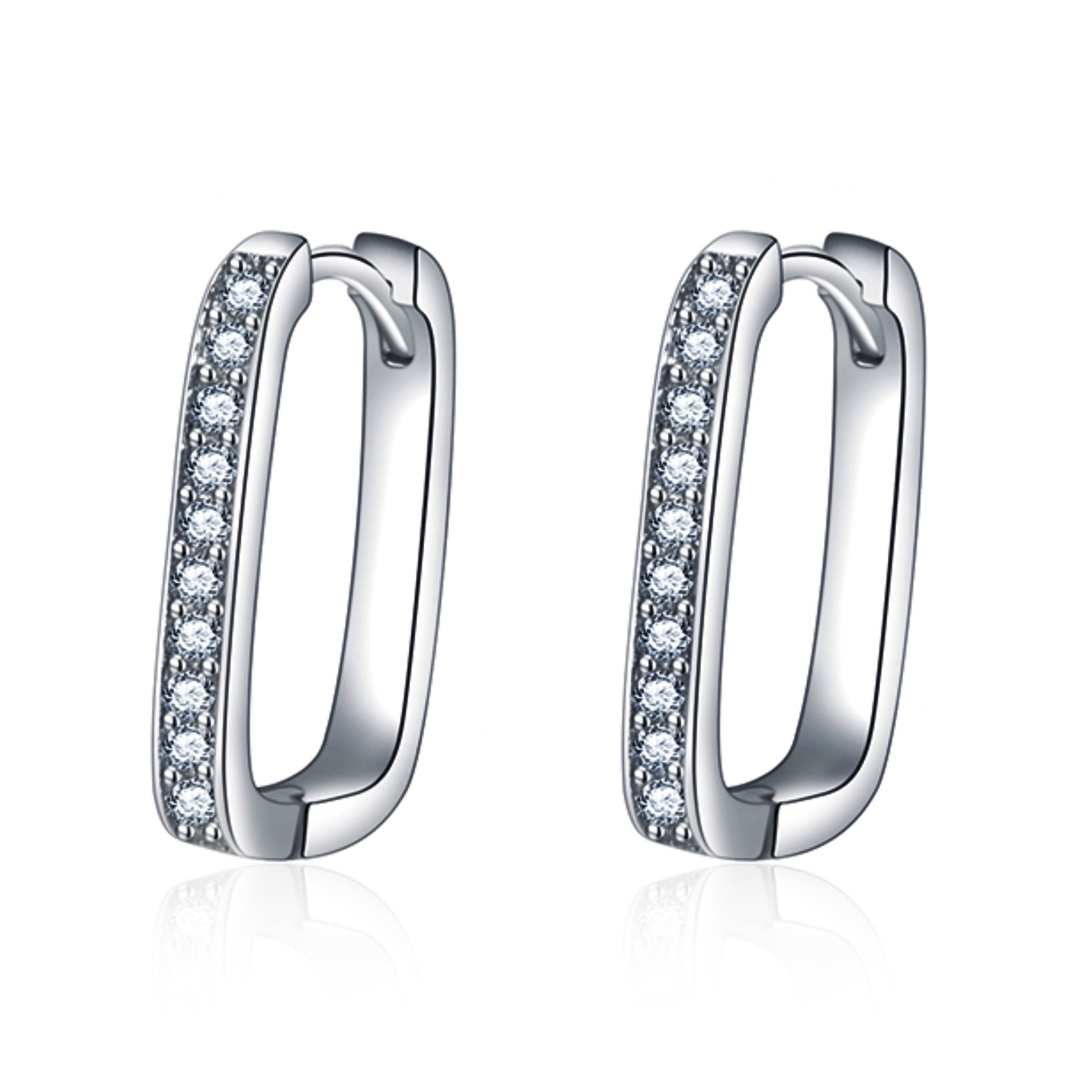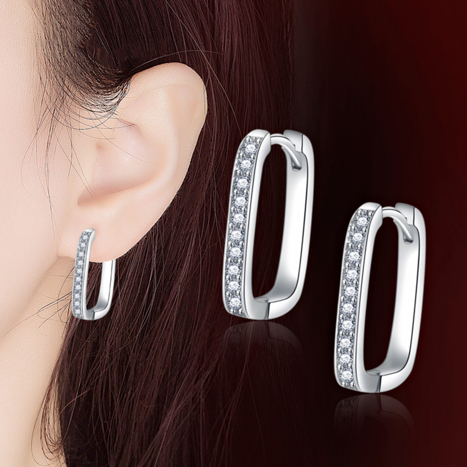 European and American Foreign Trade Single Row Diamond Ear Buckle Earrings Simple Geometric Rectangular Personality Zircon Ear Buckle Earrings Break Hair