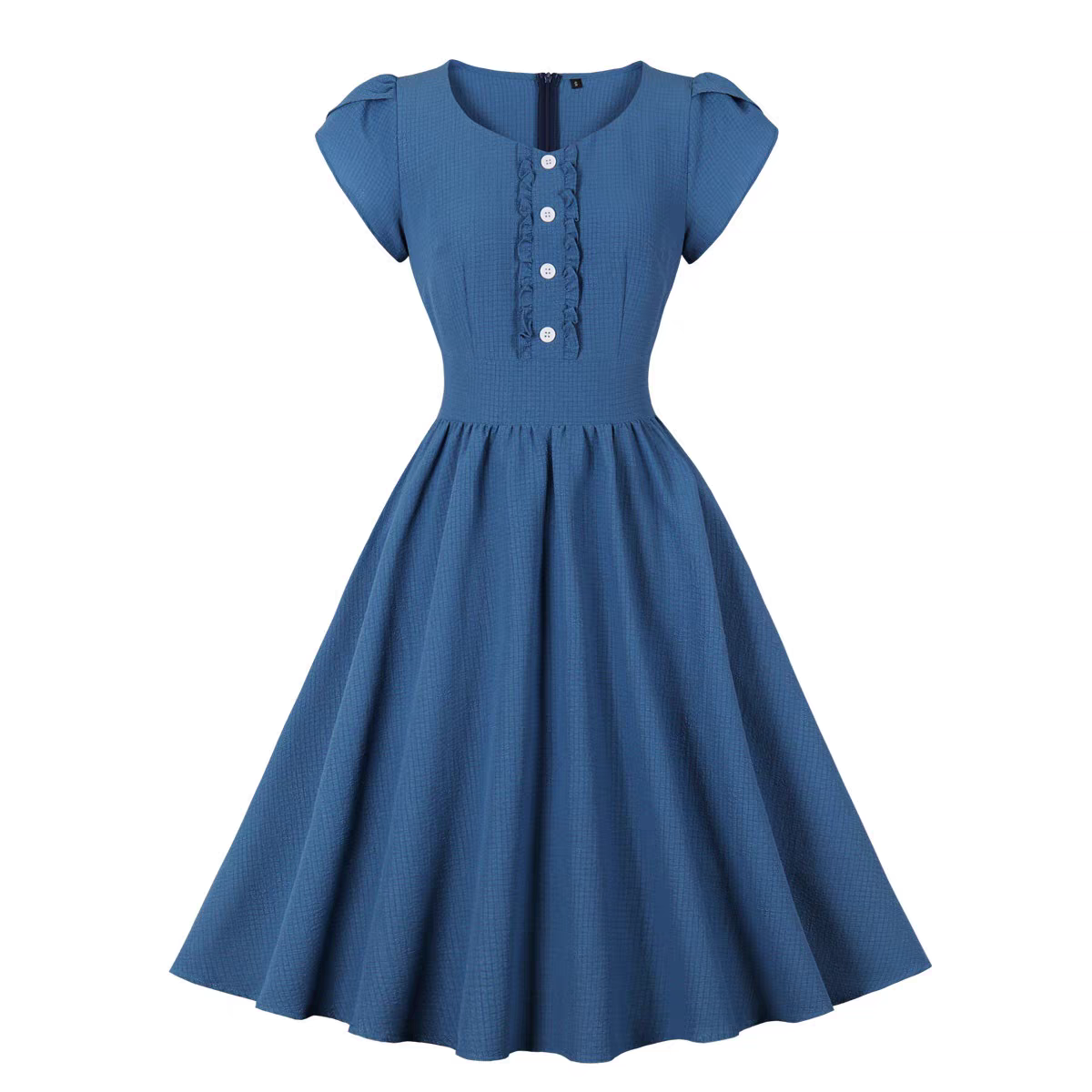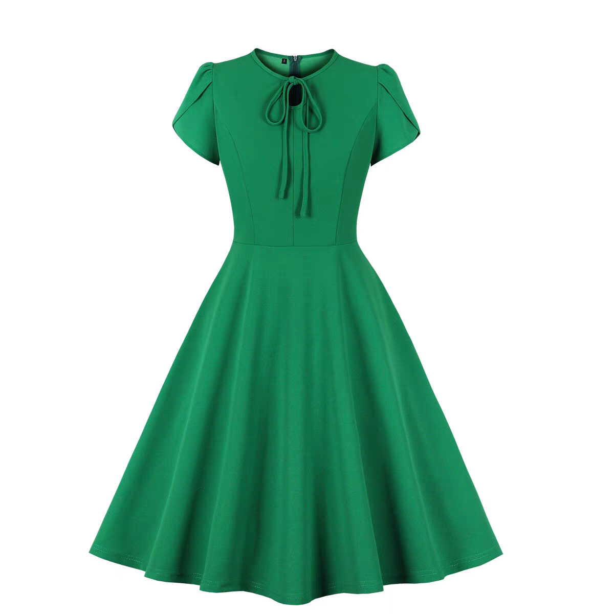 European and American French elegant ladies Hong Kong style retro white green 1950s, gentle temperament performance big dress