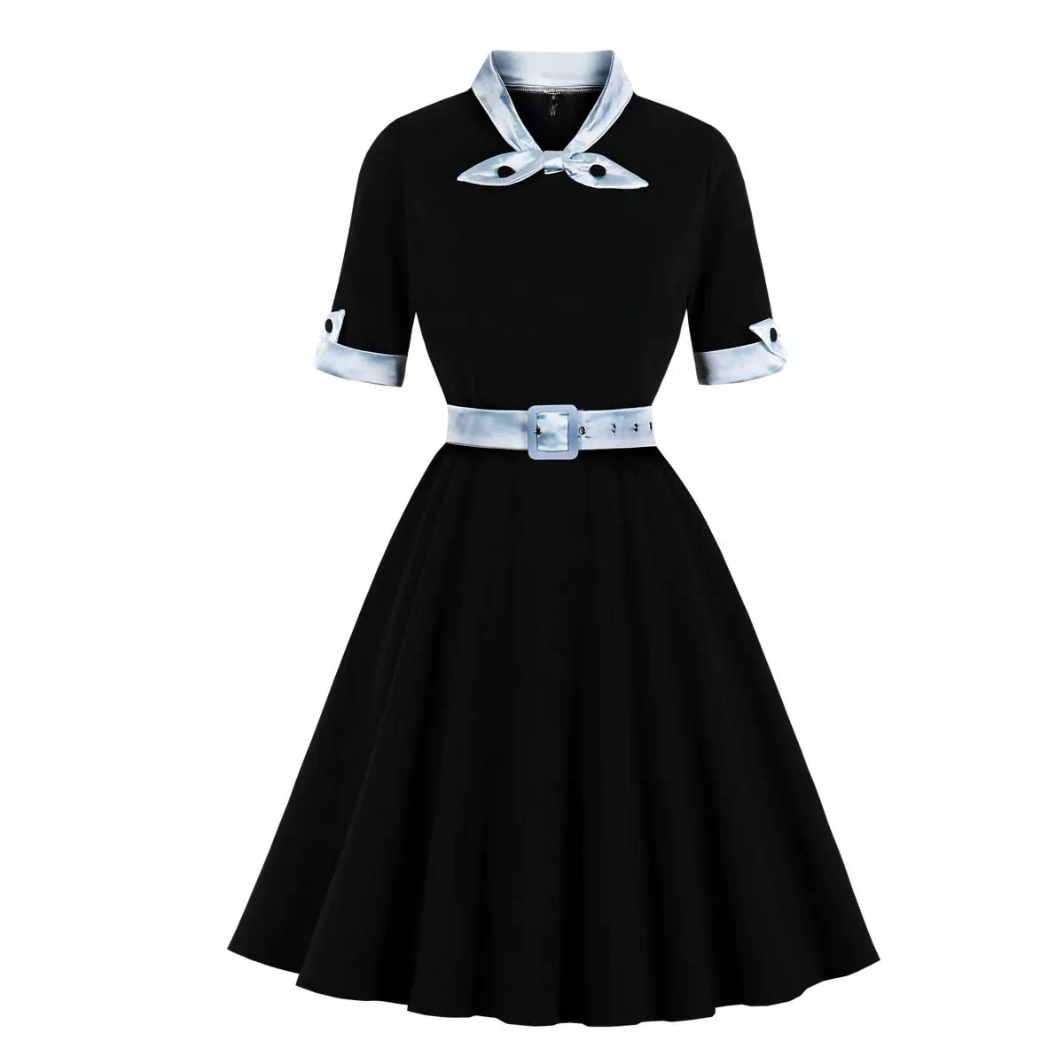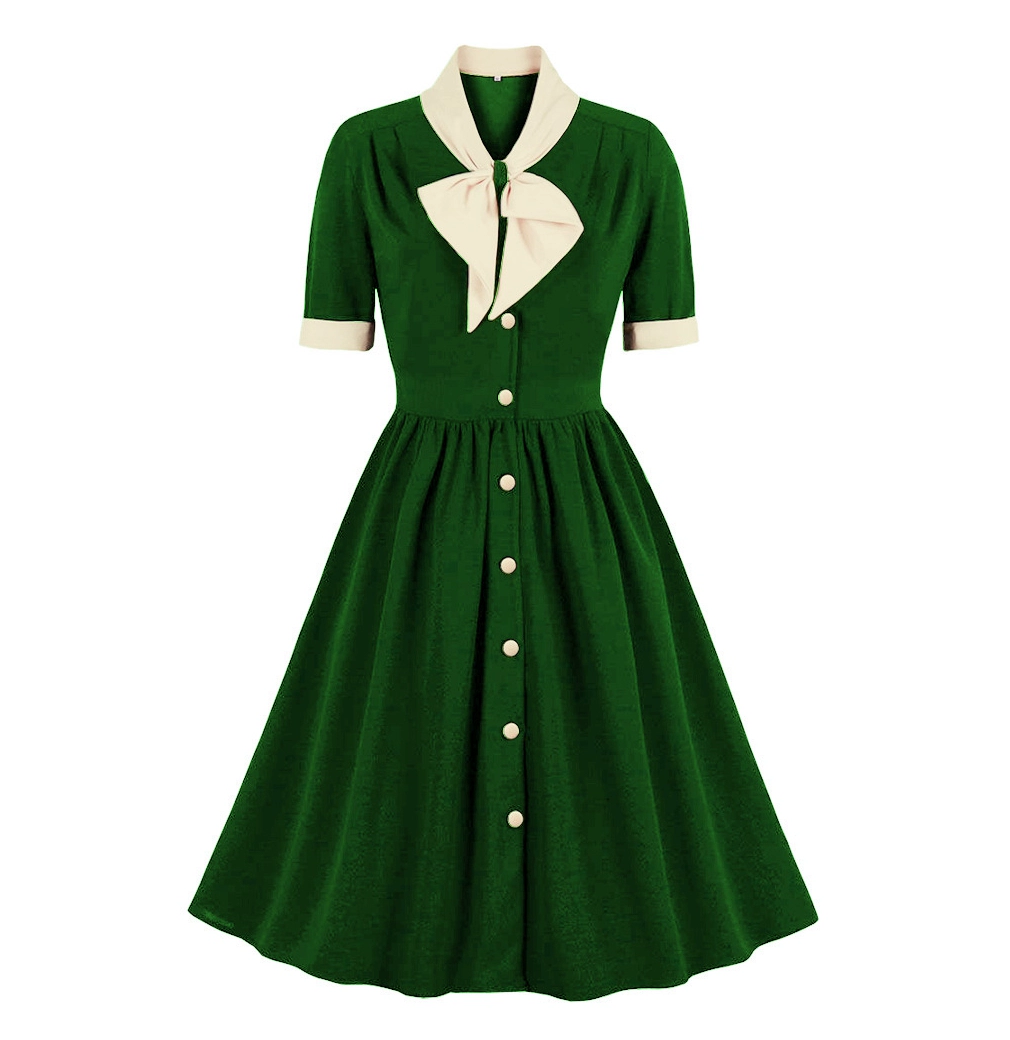 European and American French elegant lady Hong Kong style retro white and green 50's style gentle temperament performance dress