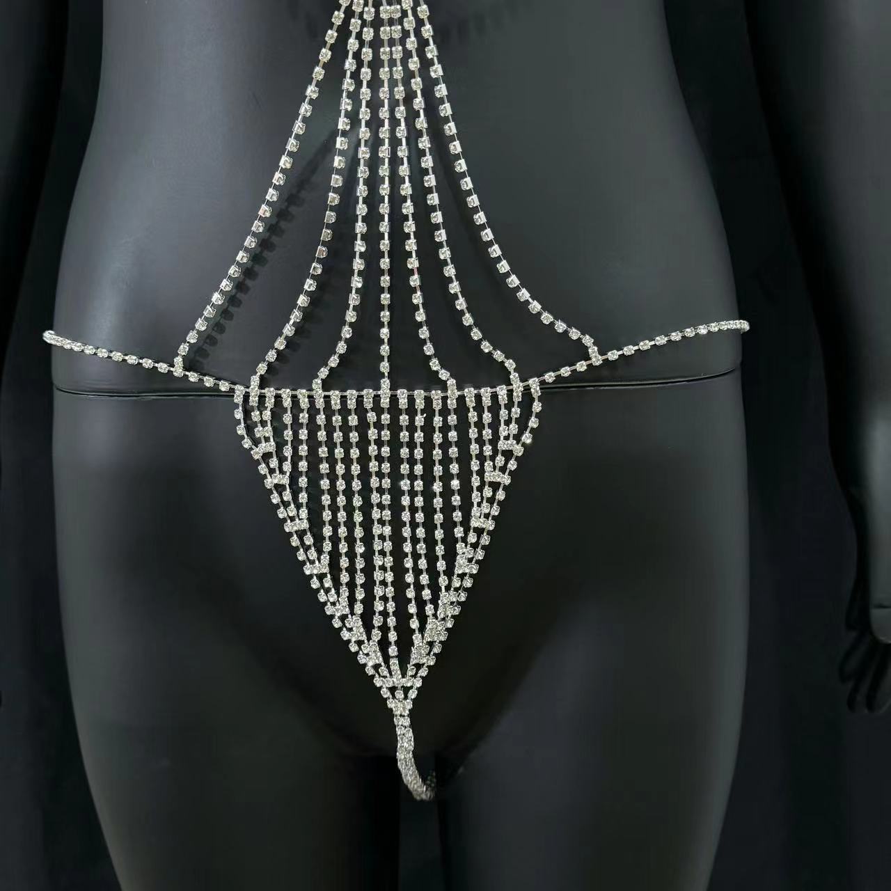 | nameOriginal | European and American Full Diamond Body Chain Suit Fashion Shiny Diamond-encrusted Night Shop Evening Bra G-string One-piece Rhinestone Underwear |