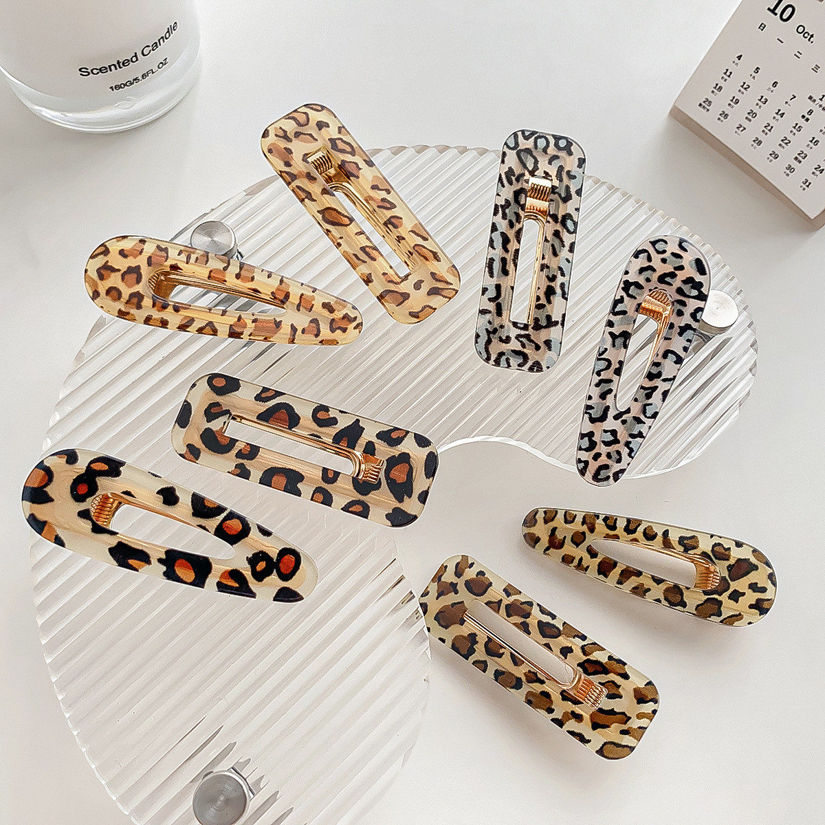| nameOriginal | European and American Girls Simple Leopard Color Acrylic Drop Clip Square Side Clip Retro High-grade Style One-character Cosmetic Clip |