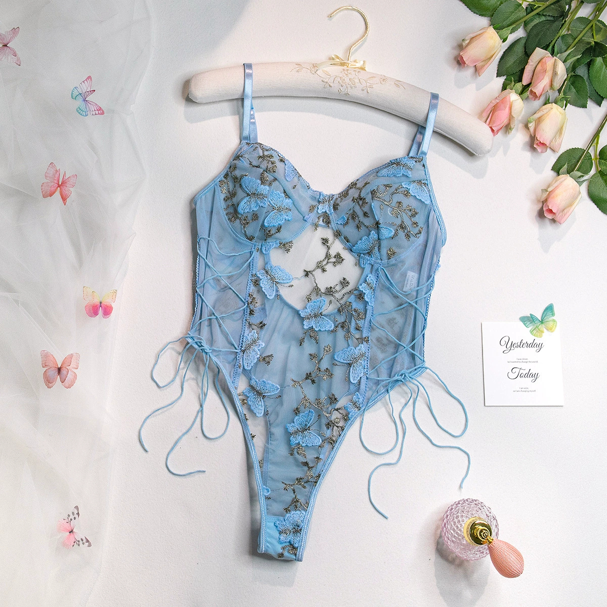 | nameOriginal | European and American gray foreign trade butterfly embroidery slim sexy versatile triangle crotch jumpsuit women's camisole top |