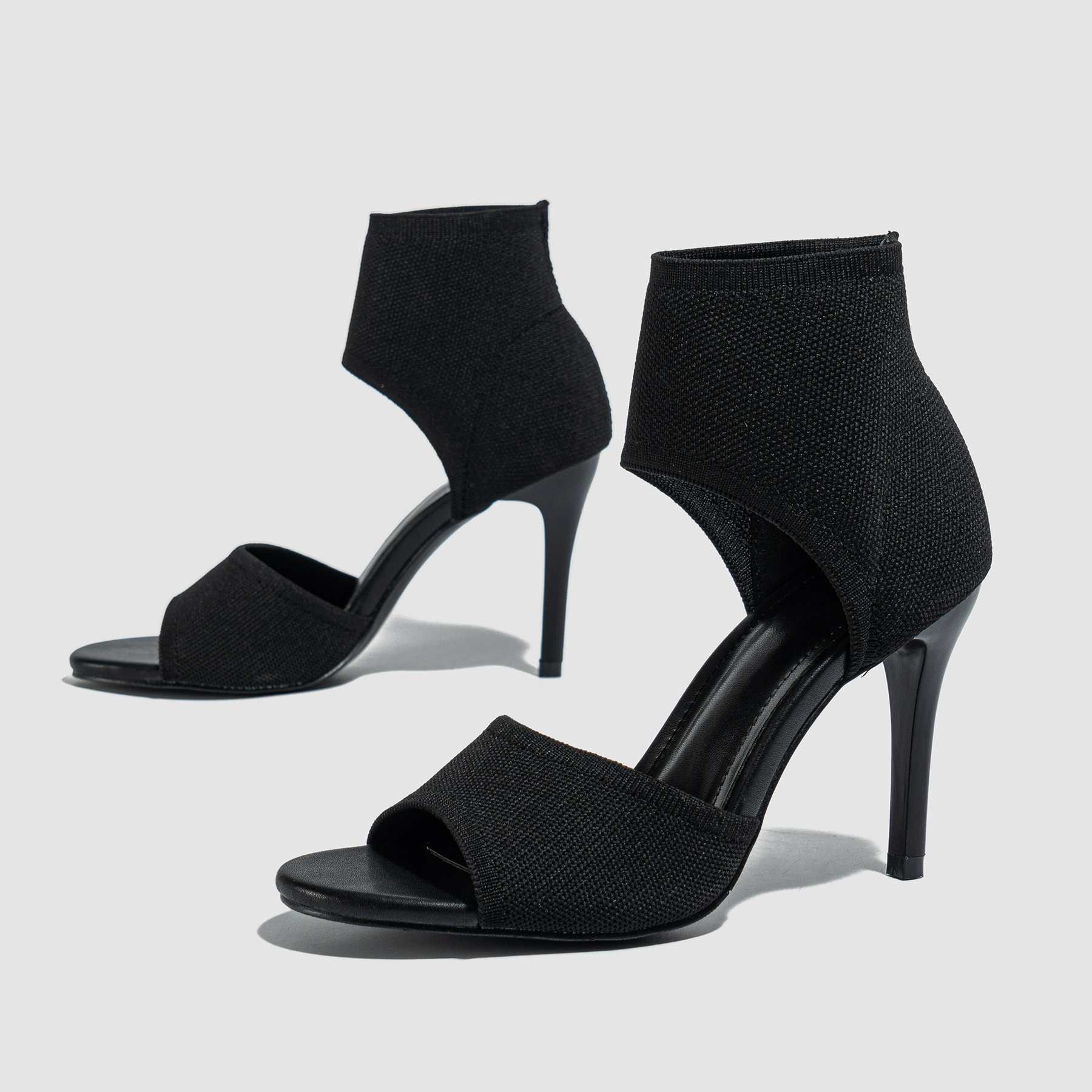 European and American high-heeled fish mouth knitted elastic hollow sandals