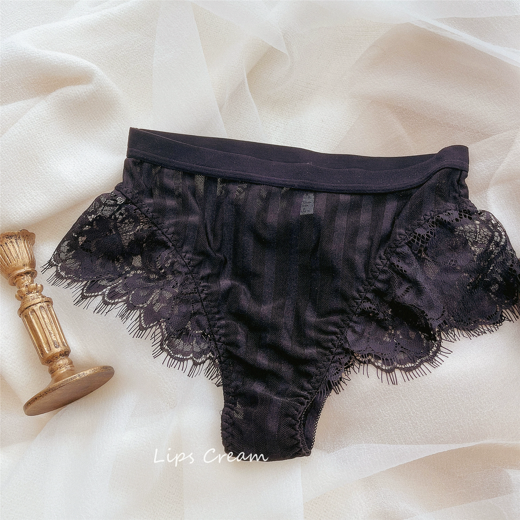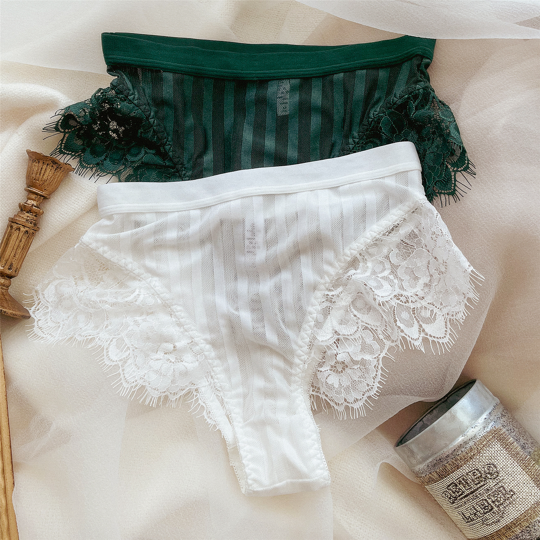 | nameOriginal | European and American high waist triangle lace mesh striped underwear |