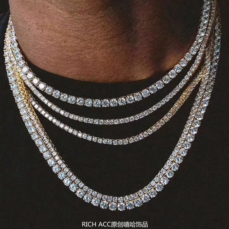 European and American hip-hop 3mm4mm full diamond zircon necklace for men and women