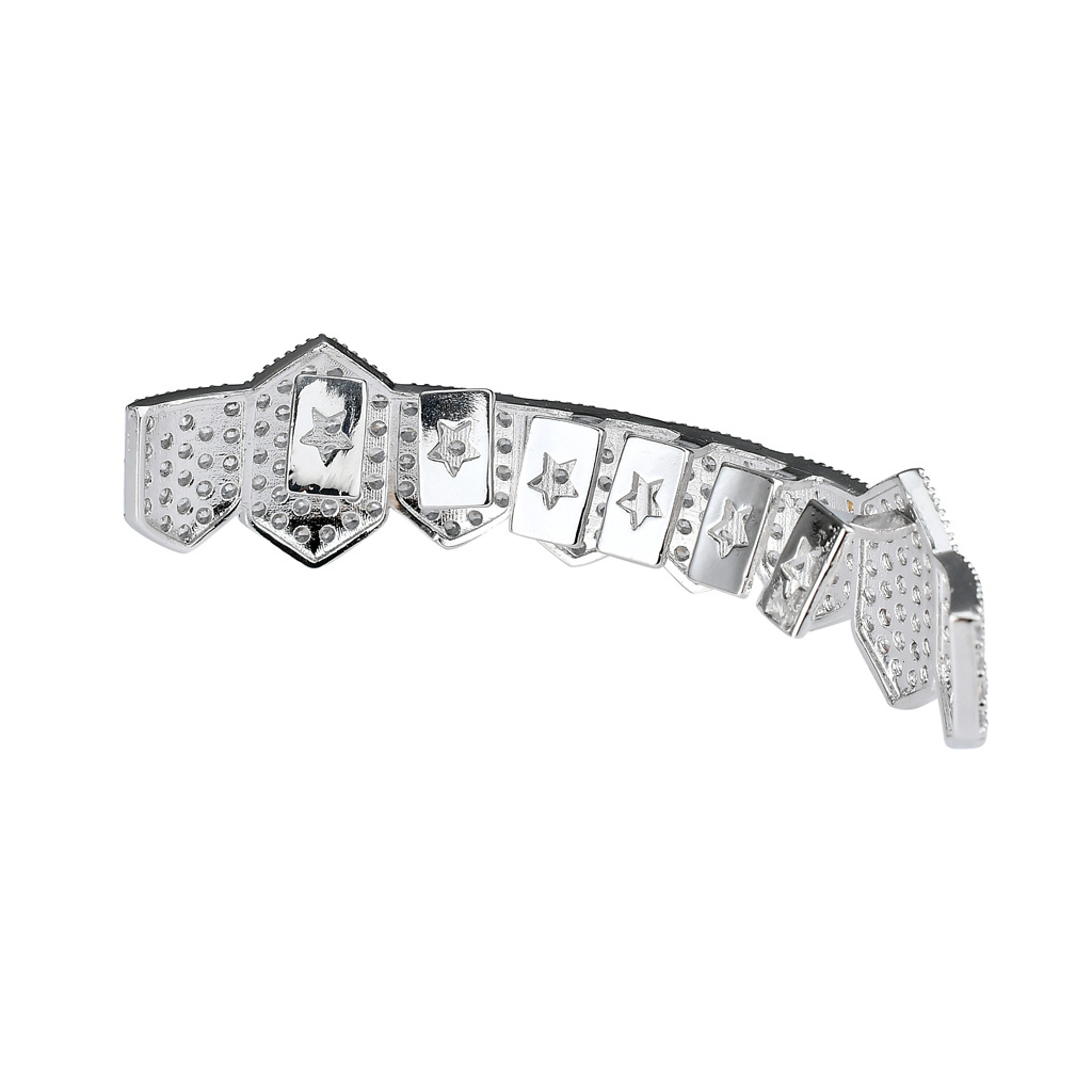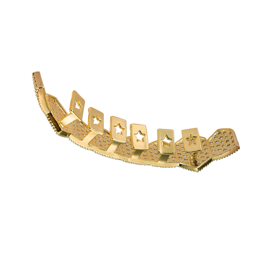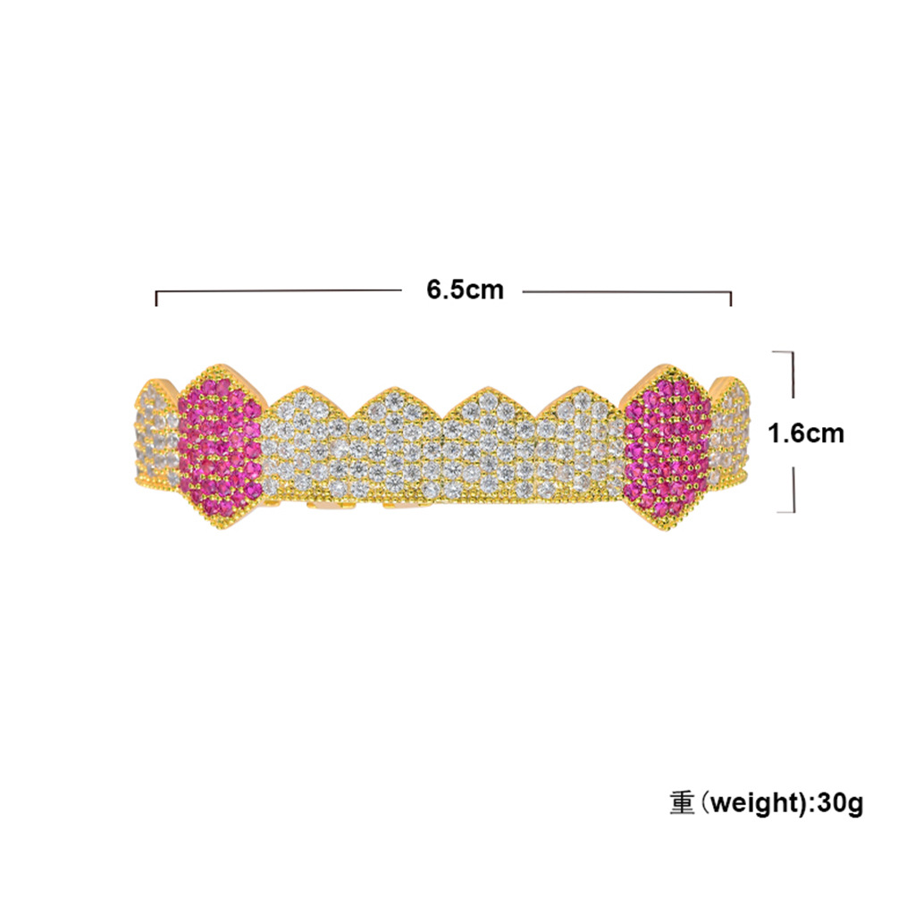 | nameOriginal | European and American hip-hop 8-tooth micro-inlaid red zircon single-row upper teeth gold braces Hiphop Grillz vampire fangs |