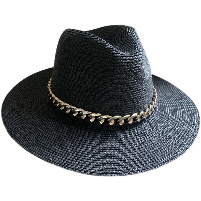 | nameOriginal | European and American Hip Hop Black Hat Acrylic Chain Jazz Straw Hat Children Street Shooting Fashion Sunshade Panama Hat  |