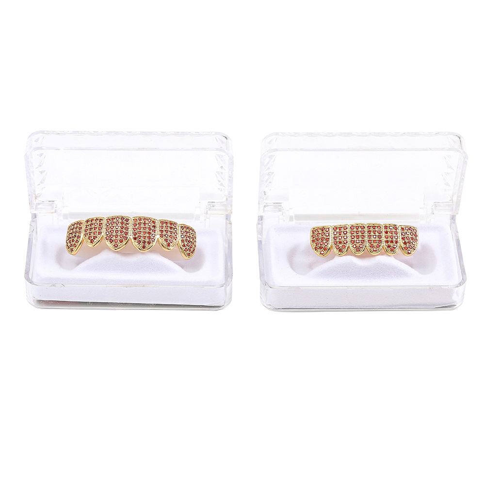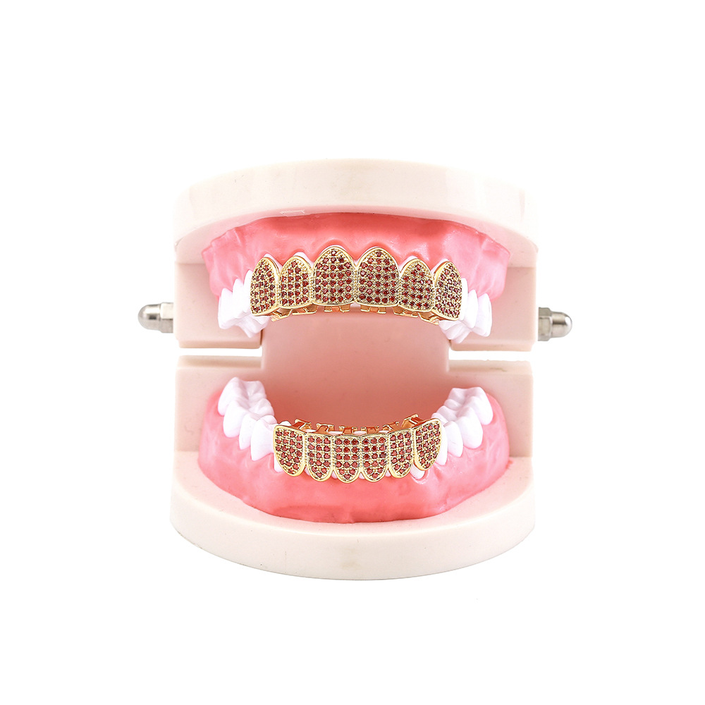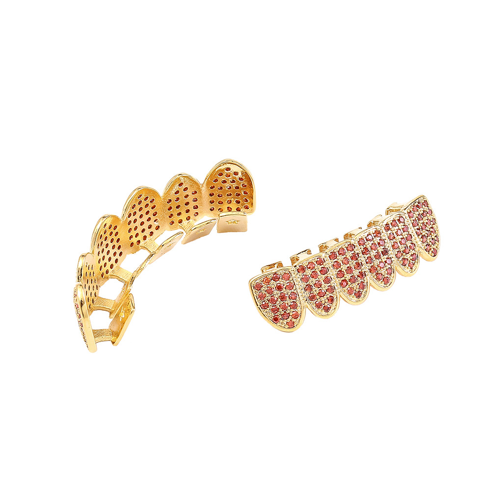 | nameOriginal | European and American hip-hop braces color micro-inlaid zircon braces garnet red zircon gold braces hip-hop braces men's jewelry |
