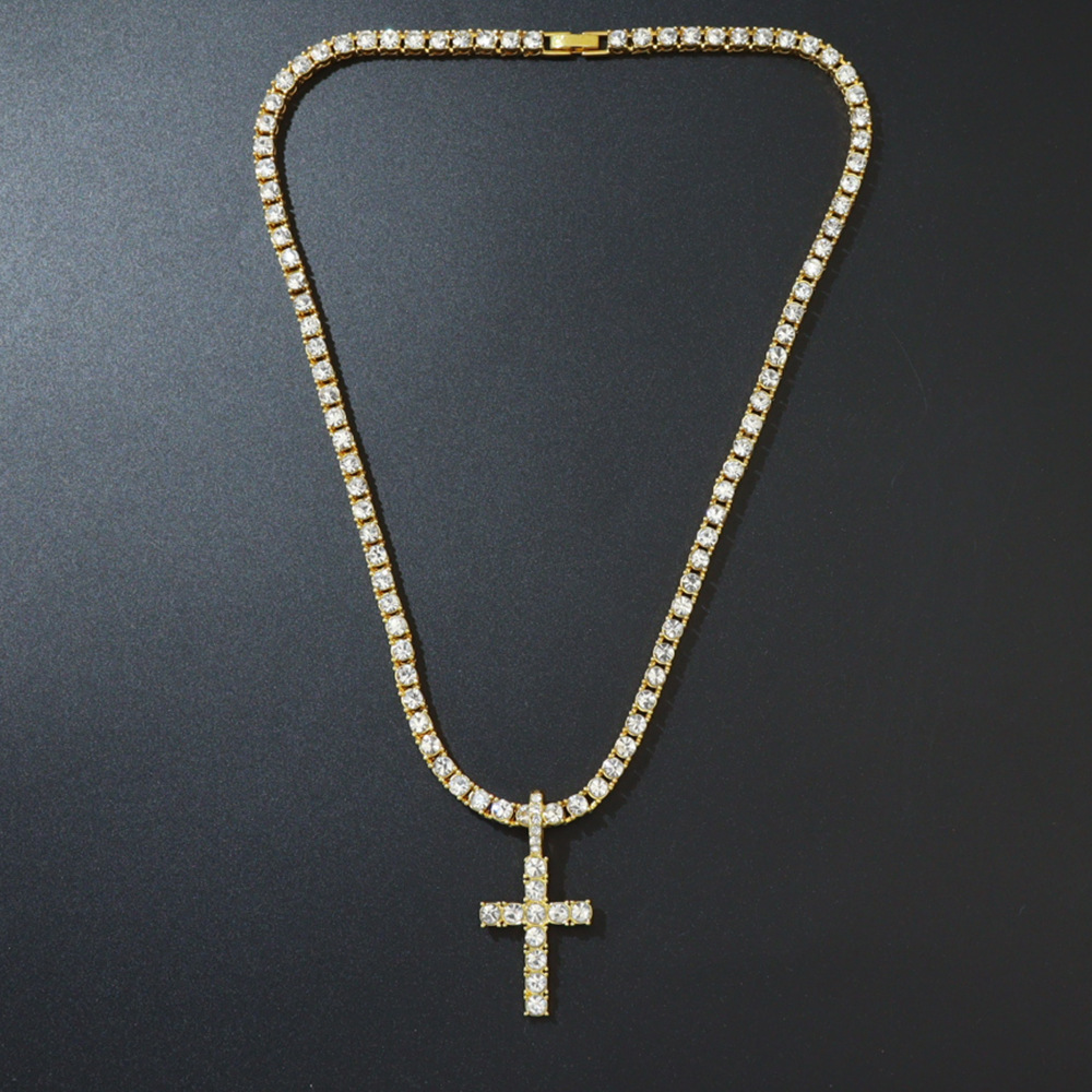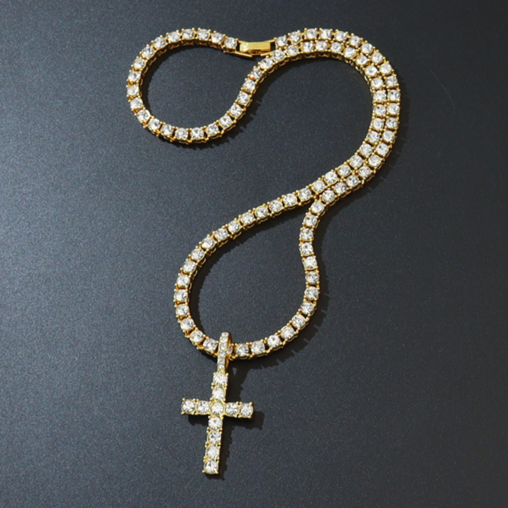 | nameOriginal | European and American Hip Hop Style Full Diamond cross Pendant 3mm4mm Single Row Diamond Tennis Chain necklace cross necklace |