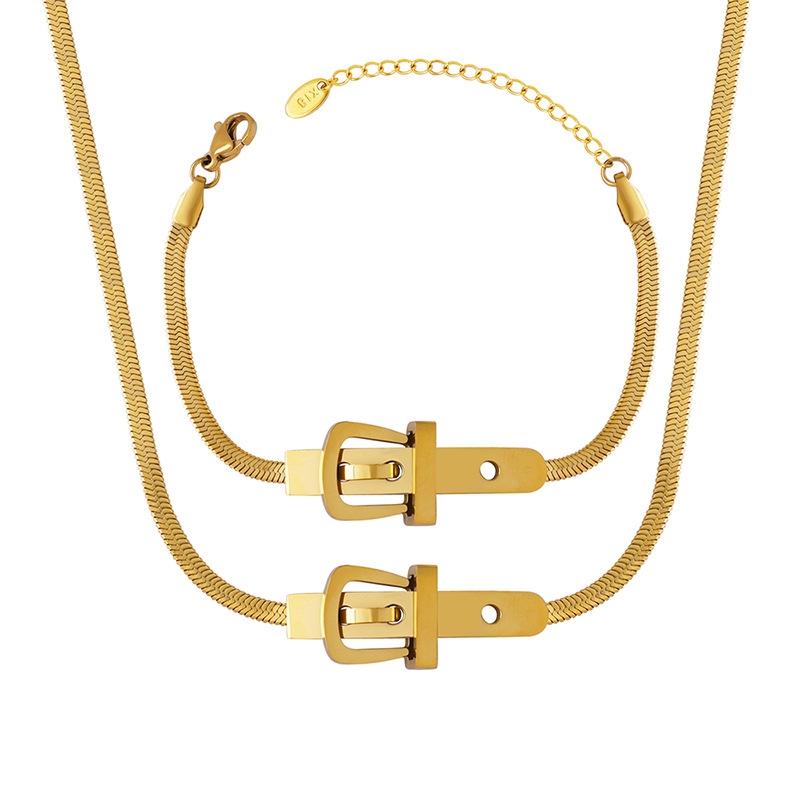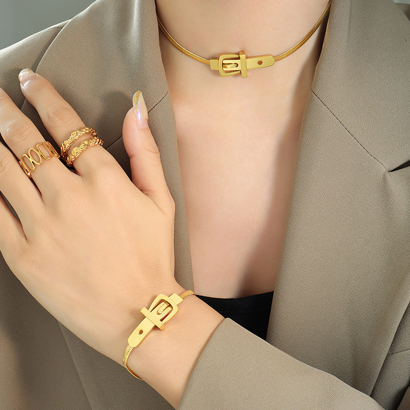 | nameOriginal | European and American Hot Fashion Fashion Blade Chain Buckle Necklace Women Hip-hop Titanium Steel Clavicle Chain Bracelet Jewelry Set |