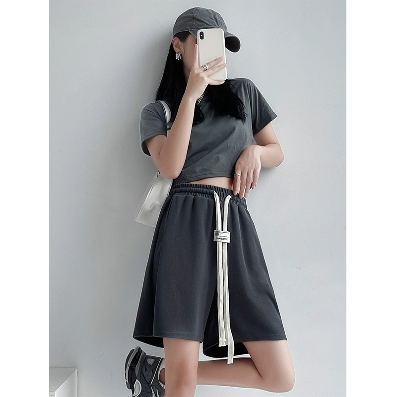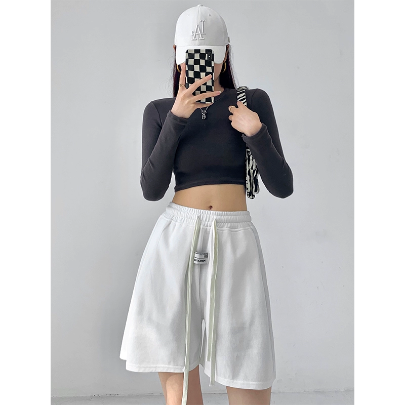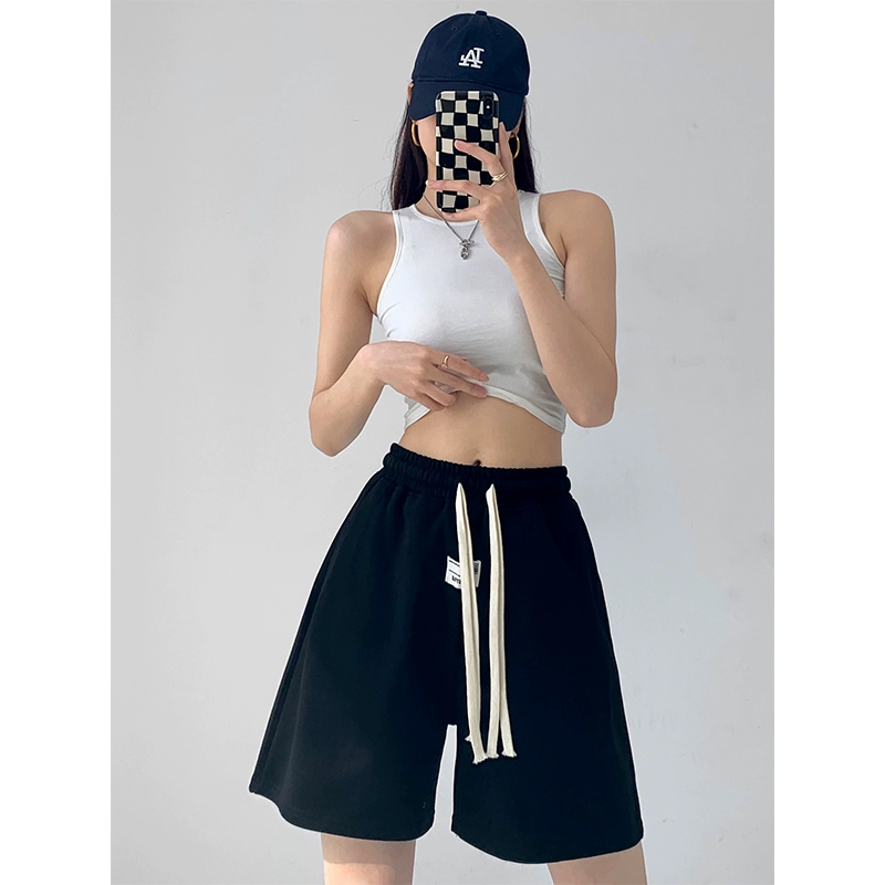 | nameOriginal | European and American hot girls black sports shorts women's summer thin loose high-waisted mid-pants casual wide-leg five-point pants trendy ins |