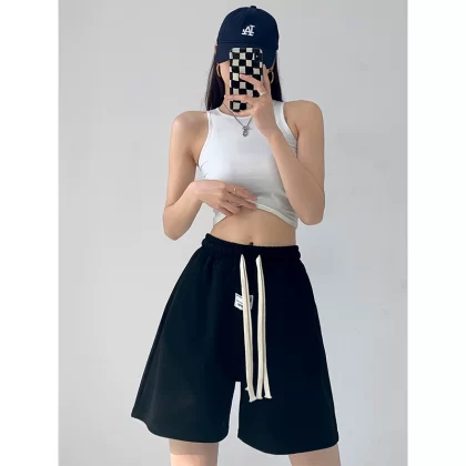 | nameOriginal | European and American hot girls black sports shorts women's summer thin loose high-waisted mid-pants casual wide-leg five-point pants trendy ins |