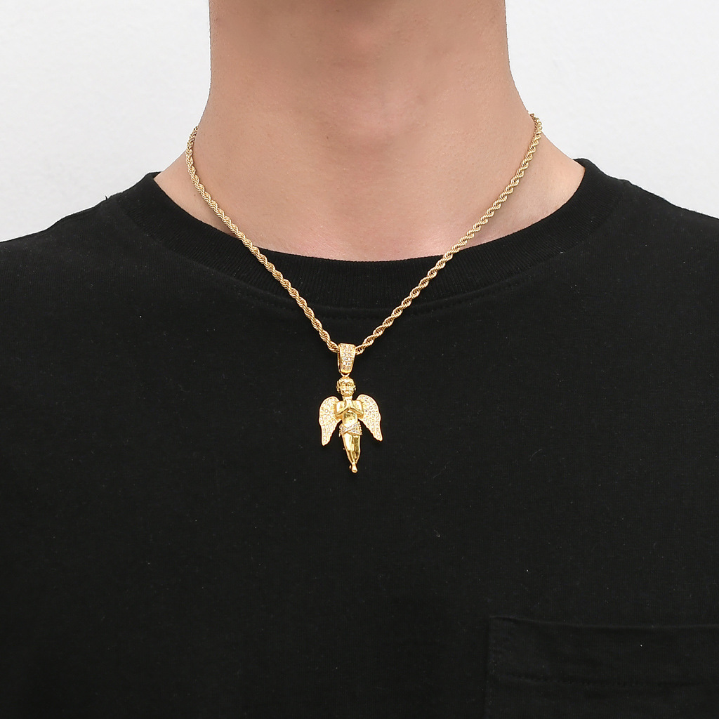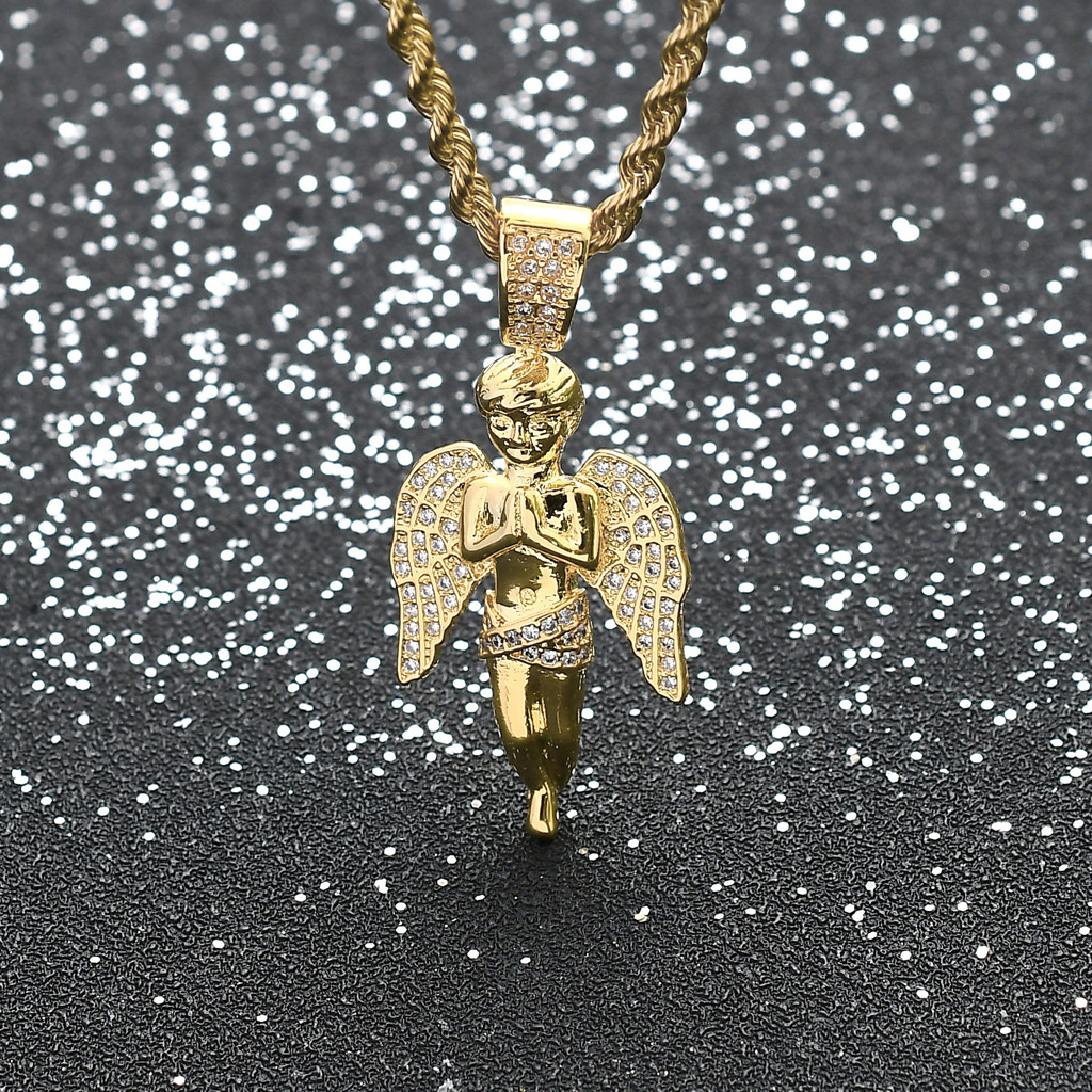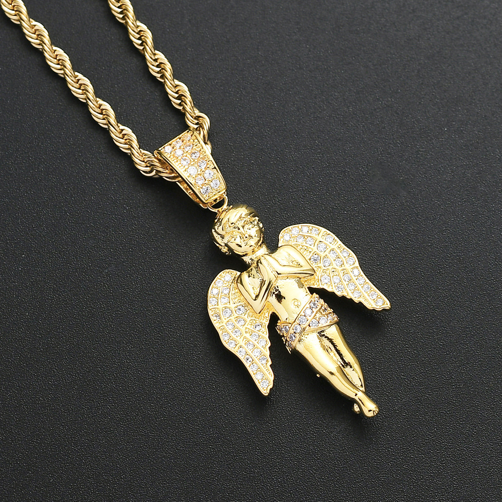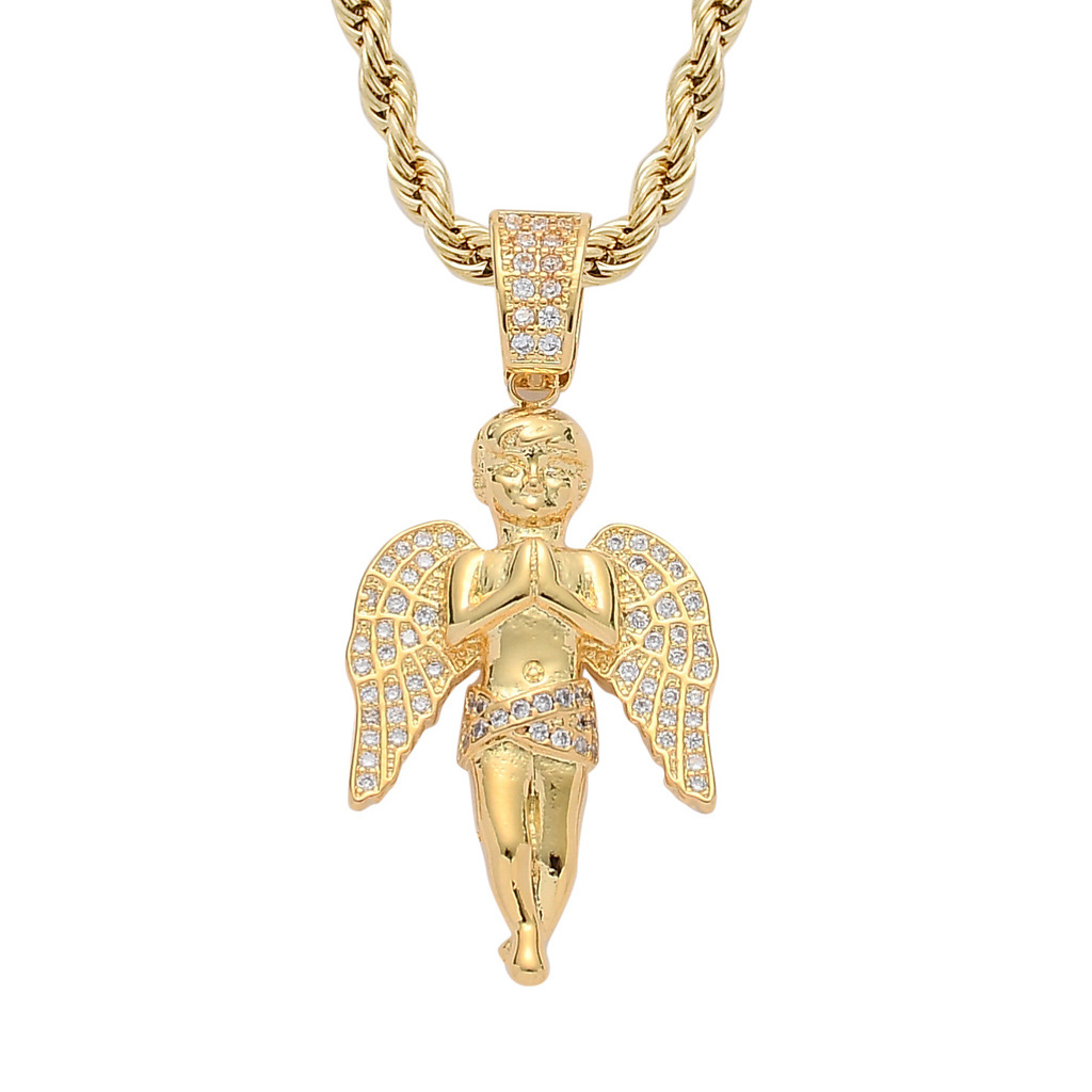 European and American Hot Hip-Hop Hands-on Angel Pendant 18K Gold Micro-inlaid Zircon Hip-Hop Punk Men's Necklace