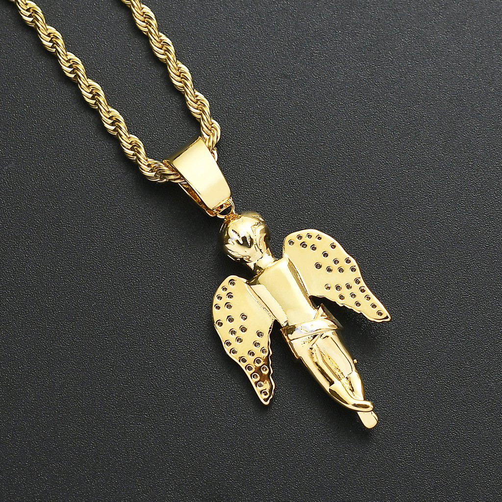 European and American Hot Hip-Hop Hands-on Angel Pendant 18K Gold Micro-inlaid Zircon Hip-Hop Punk Men’s Necklace