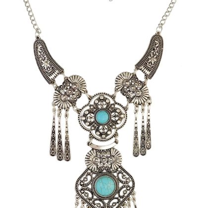 | nameOriginal | European and American Hot Sale Bohemian Ethnic Style Necklace Alloy Vintage Imitation Turquoise Tassel Pendant Necklace Woolen Chain |
