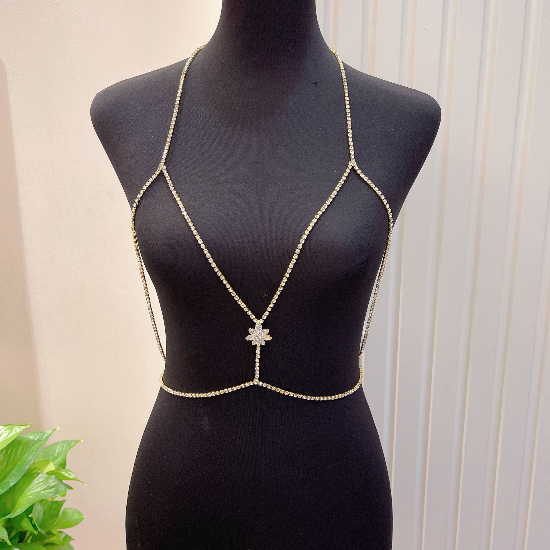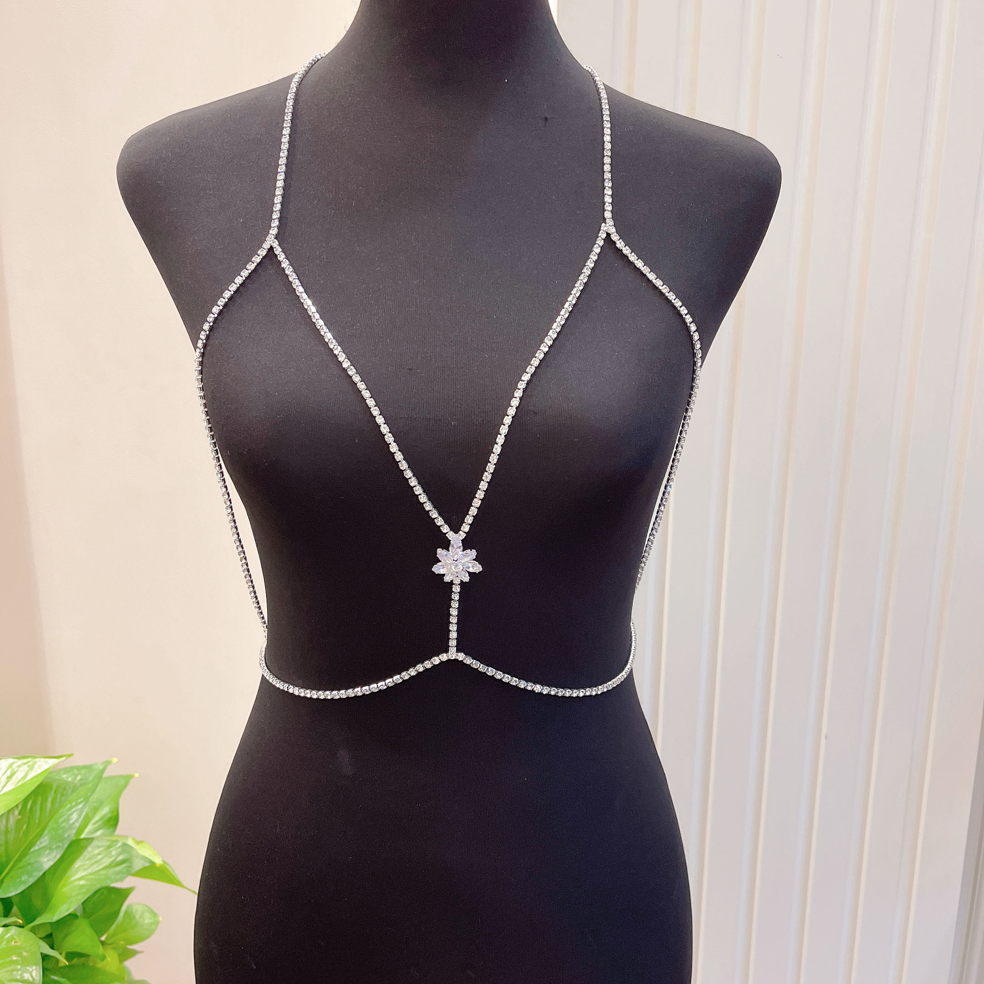 | nameOriginal | European and American Hot Sale Rhinestone Body Chain Simple Chest Chain bra Sexy Shiny Cross Geometric Circle Integrated Chain bra |