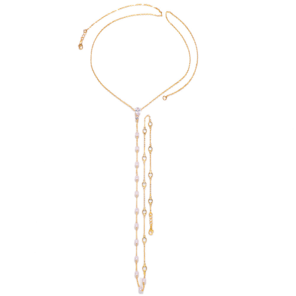European and American Hot-selling Bridal Pearl Back Chain Elegant Diamond Body Chain Dress All-match Accessories Dorsal chain