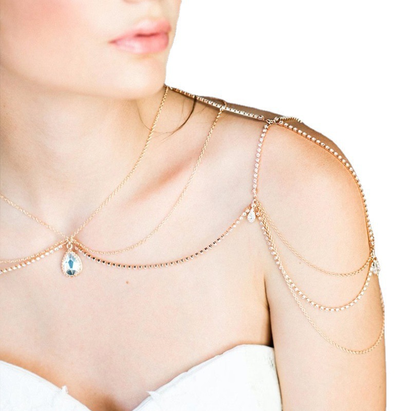 | nameOriginal | European and American Hot Water Drops Accessories High-grade Sense Multi-layer Rhinestone Shoulder Chain Bridal Dress Back Chain body chain06 |