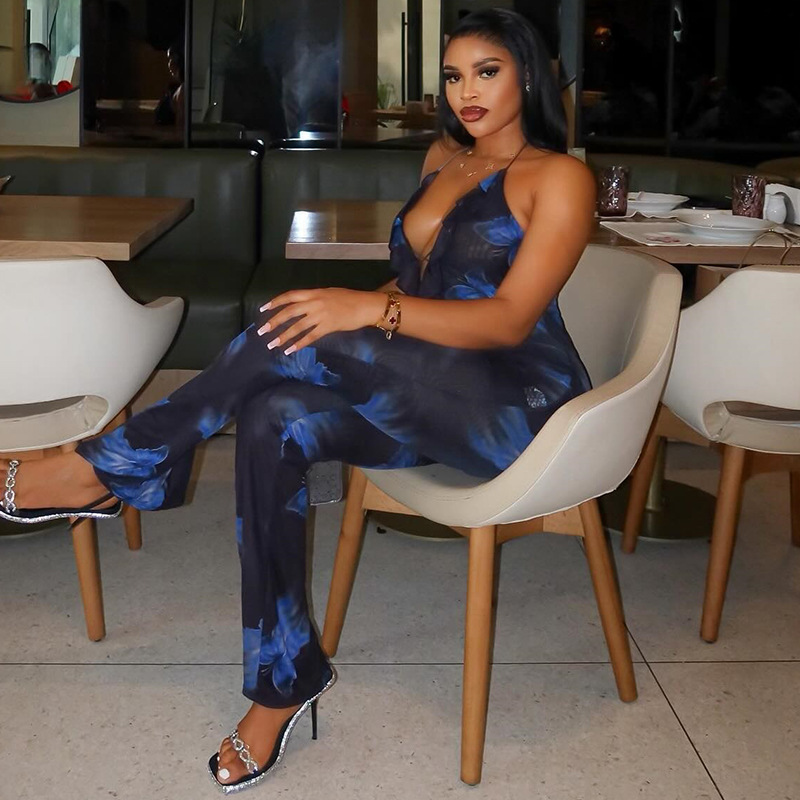 | nameOriginal | European and American Ins Foreign Trade Women's Fashion Printed Jumpsuit Sexy Deep V-neck Sleeveless Strap Backless Casual Jumpsuit |