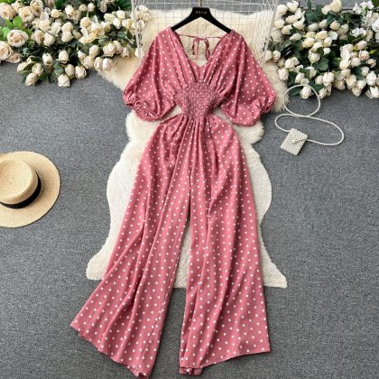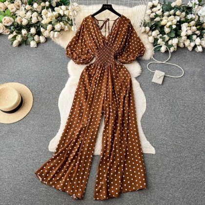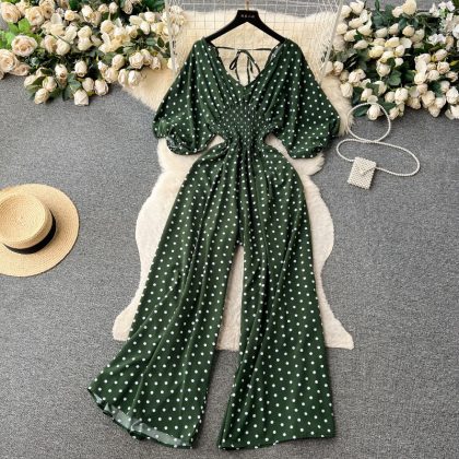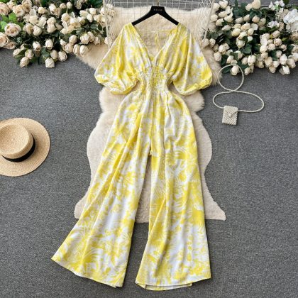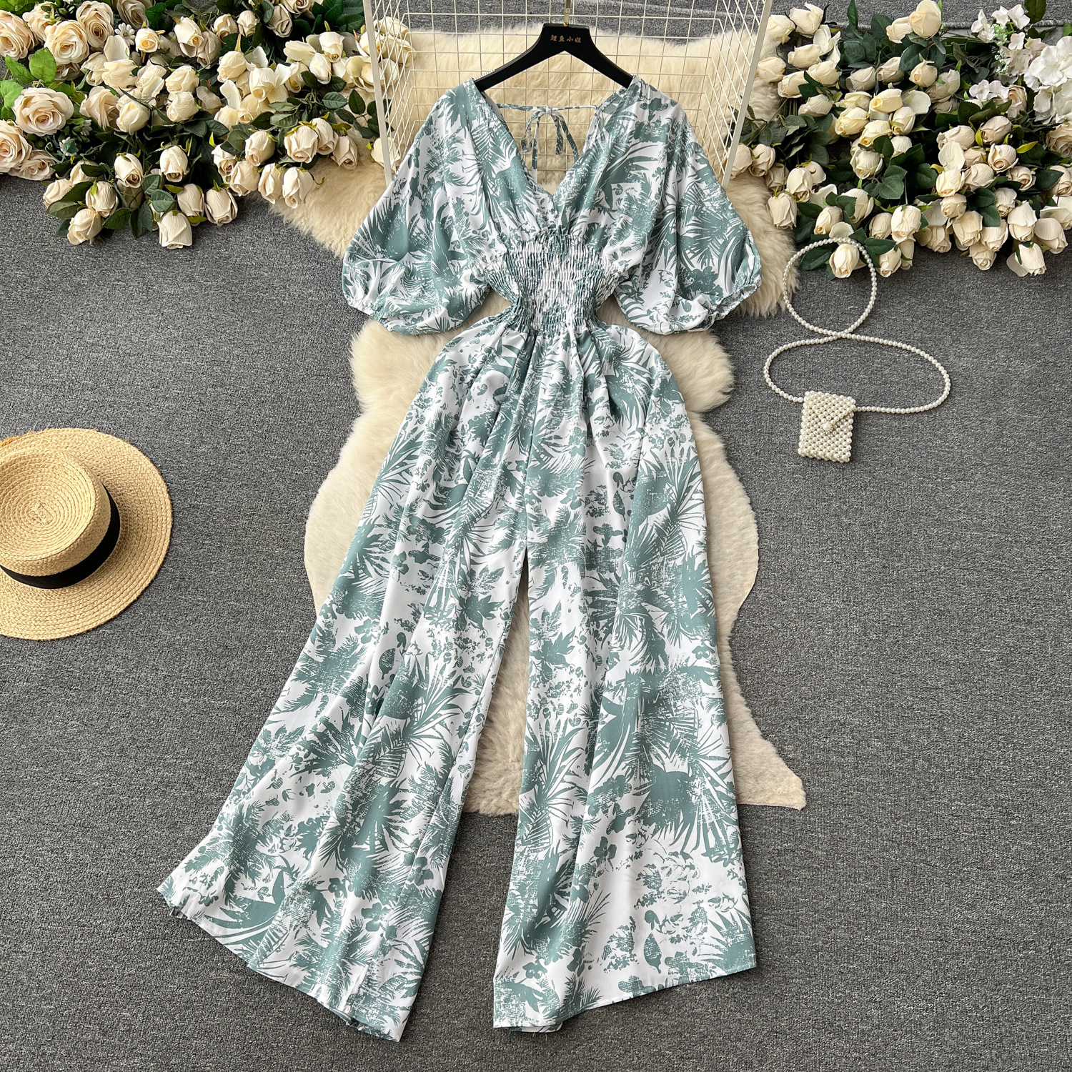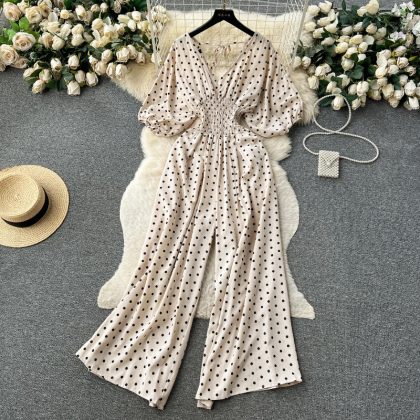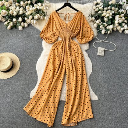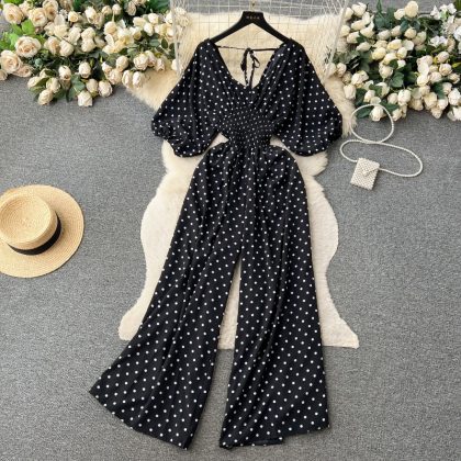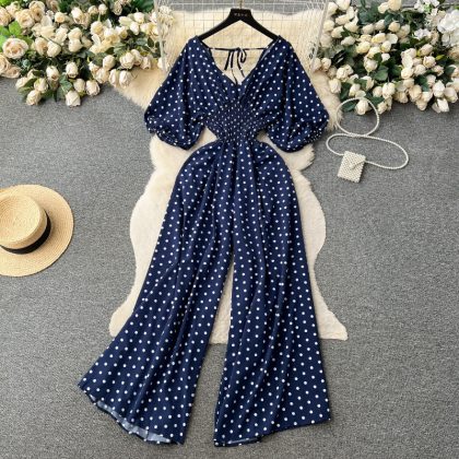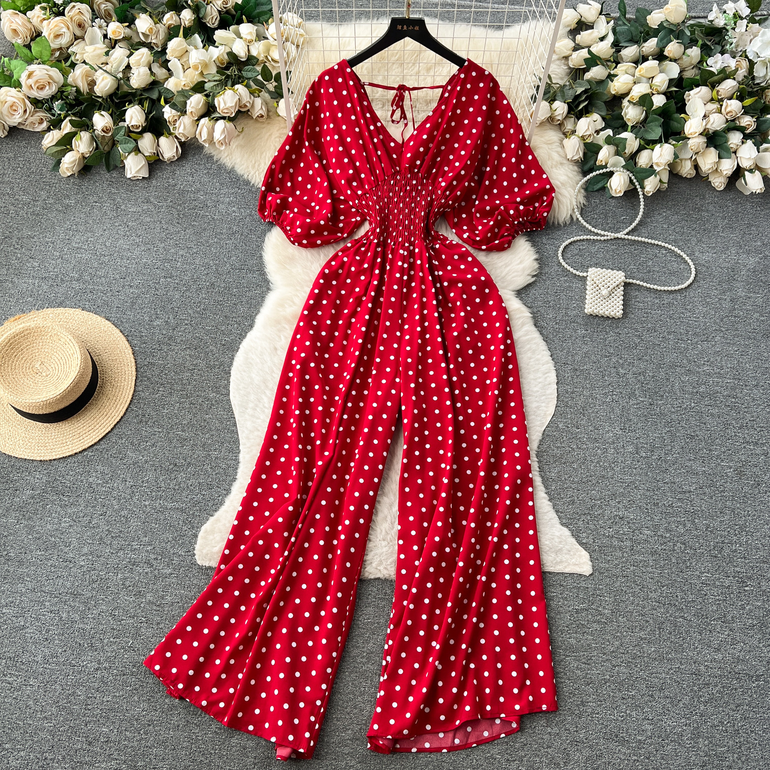 | nameOriginal | European and American ins holiday style jumpsuit women's long age-reducing puff sleeve elastic waist slimming wide-leg pants for women Summer |