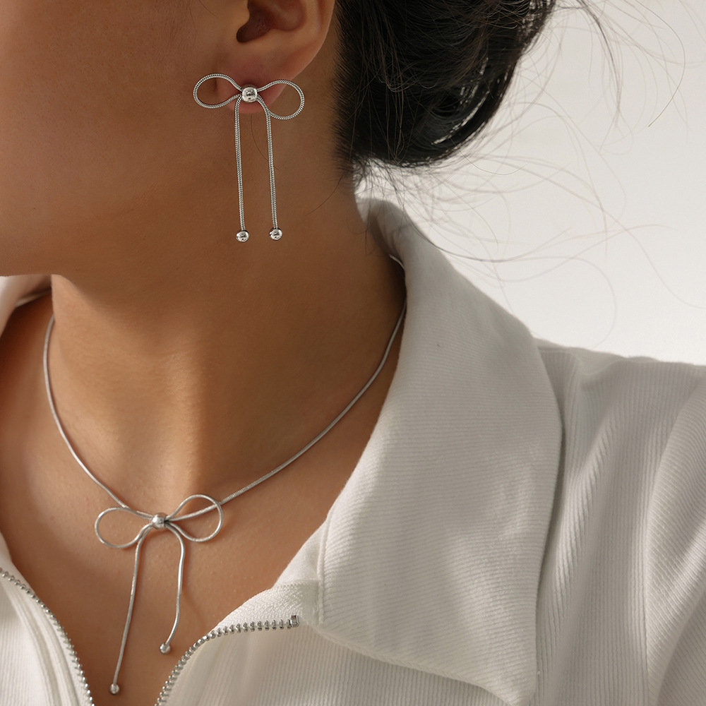 European and American Ins Internet Celebrity Same Style Pull Butterfly Design Necklace Golden Titanium Steel Clavicle Chain High-grade Jewelry Set