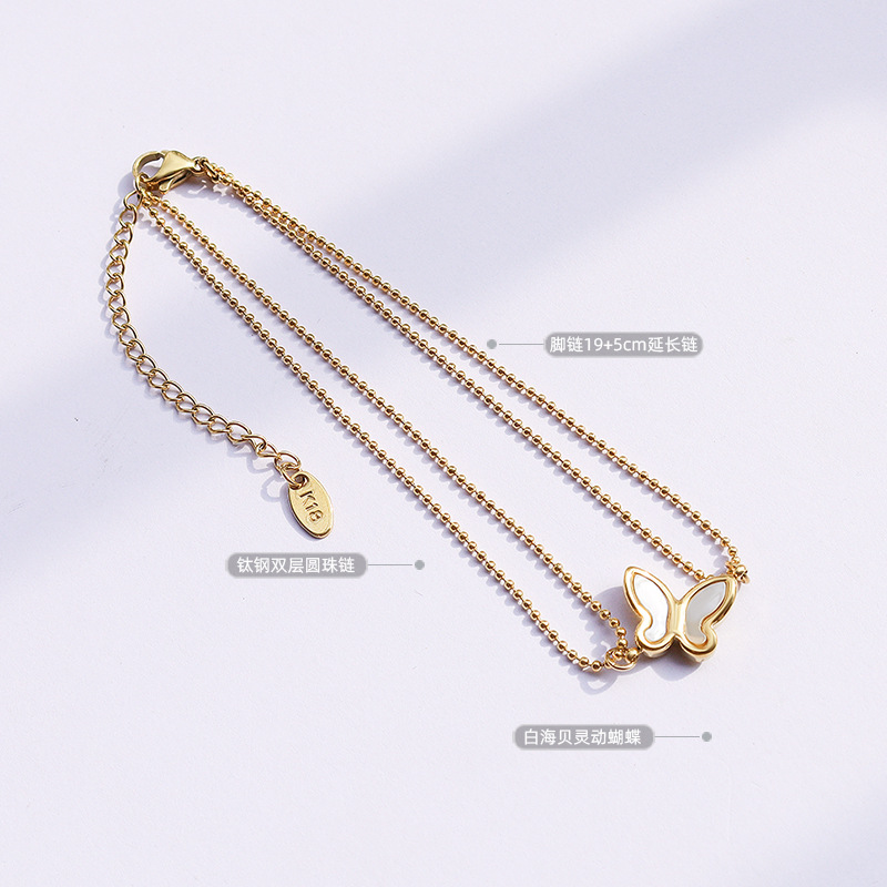 | nameOriginal | European and American ins Jewelry Simple Butterfly Anklet Women's Anklet Anklet Stainless Steel Titanium Steel Plated 18K Gold Pants Chain S103 |