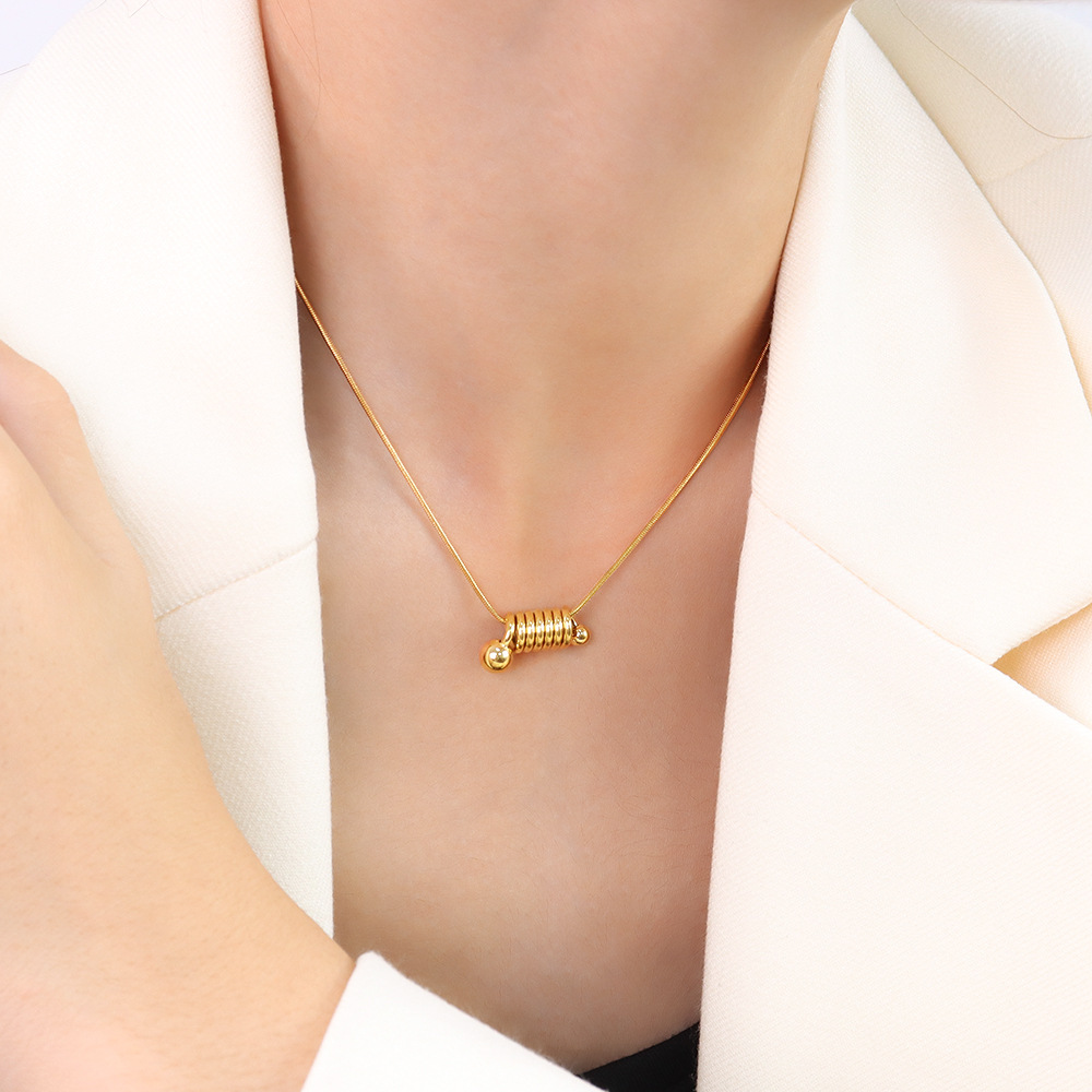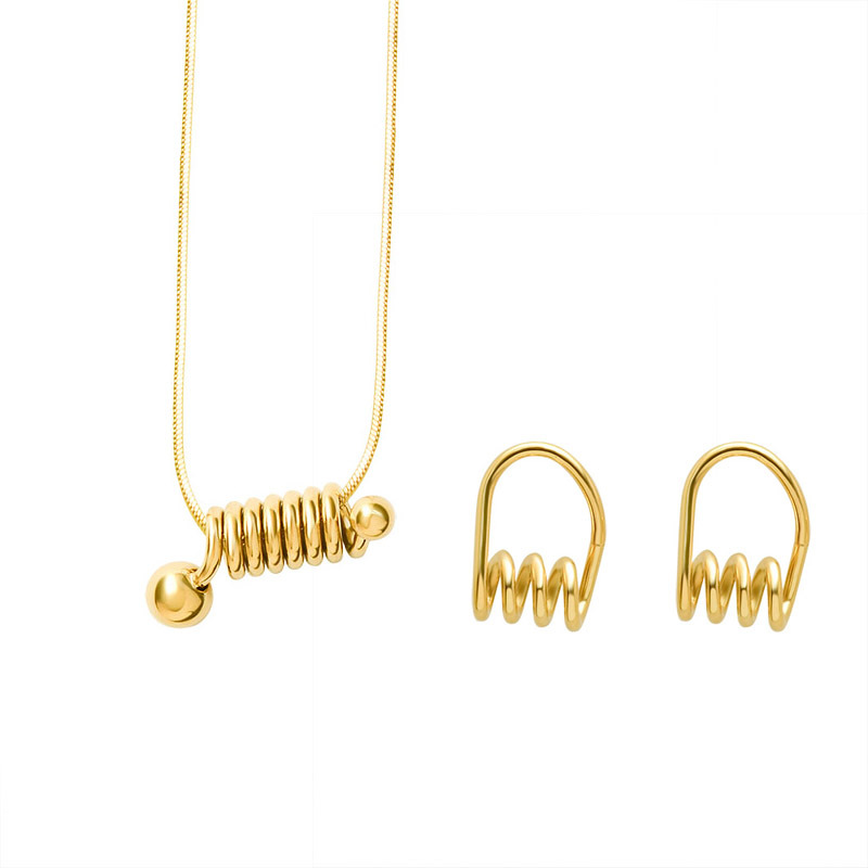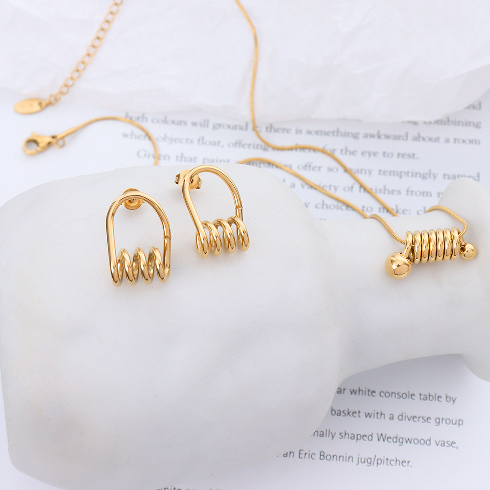 | nameOriginal | European and American ins jewelry thread multi-layer spring steel ball necklace small ear socket earrings 18K gold titanium steel suit |
